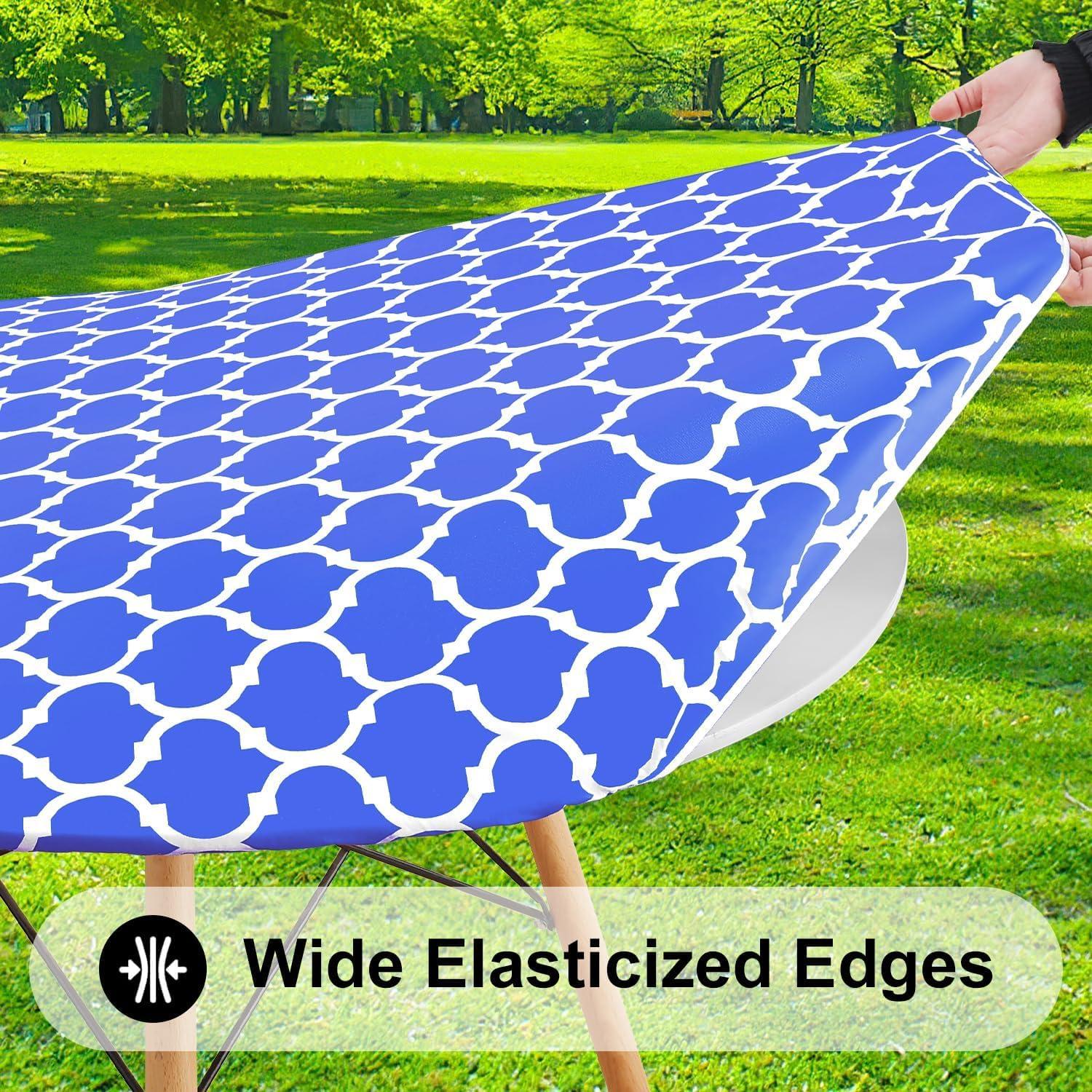 [Secure Fit with Windproof Design] Smiry's elastic-edged tablecloth ensures a snug fit, eliminating movement and the need for clips. Say goodbye to disruptions caused by wind or tugging, and savor your meals undisturbed.