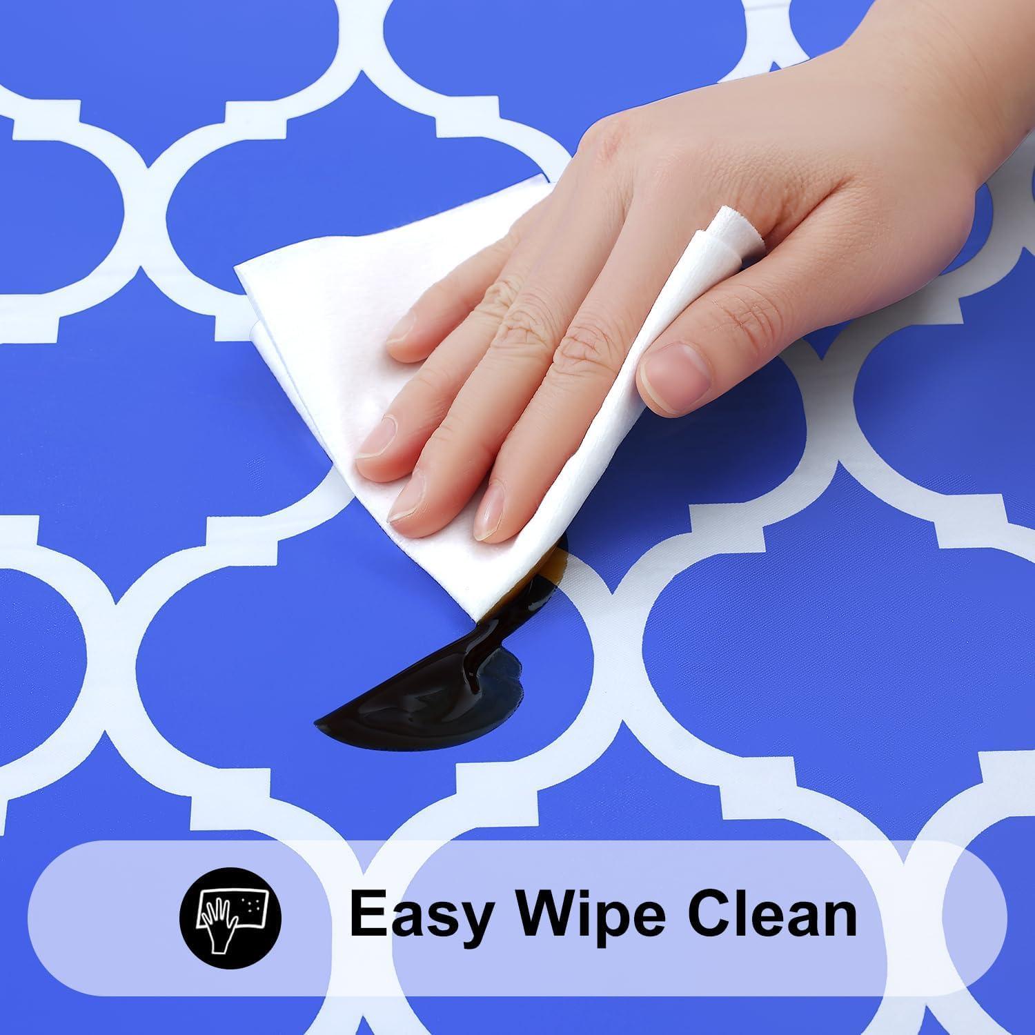 [Waterproof & Wipe Clean] Our table cover surface is made of selected vinyl material, which can effectively waterproof. Spill proof coating makes tablecloth easy to clean, just wipe it off with a damp sponge or rag in a minute.