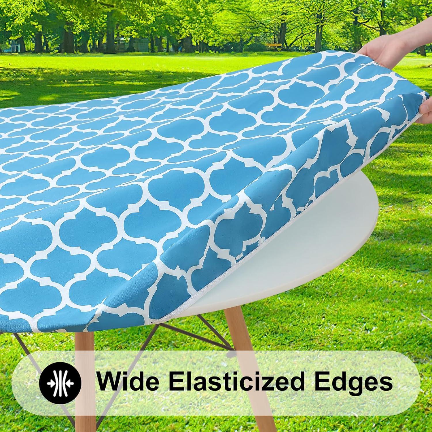 [Secure Fit with Windproof Design] Smiry's elastic-edged tablecloth ensures a snug fit, eliminating movement and the need for clips. Say goodbye to disruptions caused by wind or tugging, and savor your meals undisturbed.