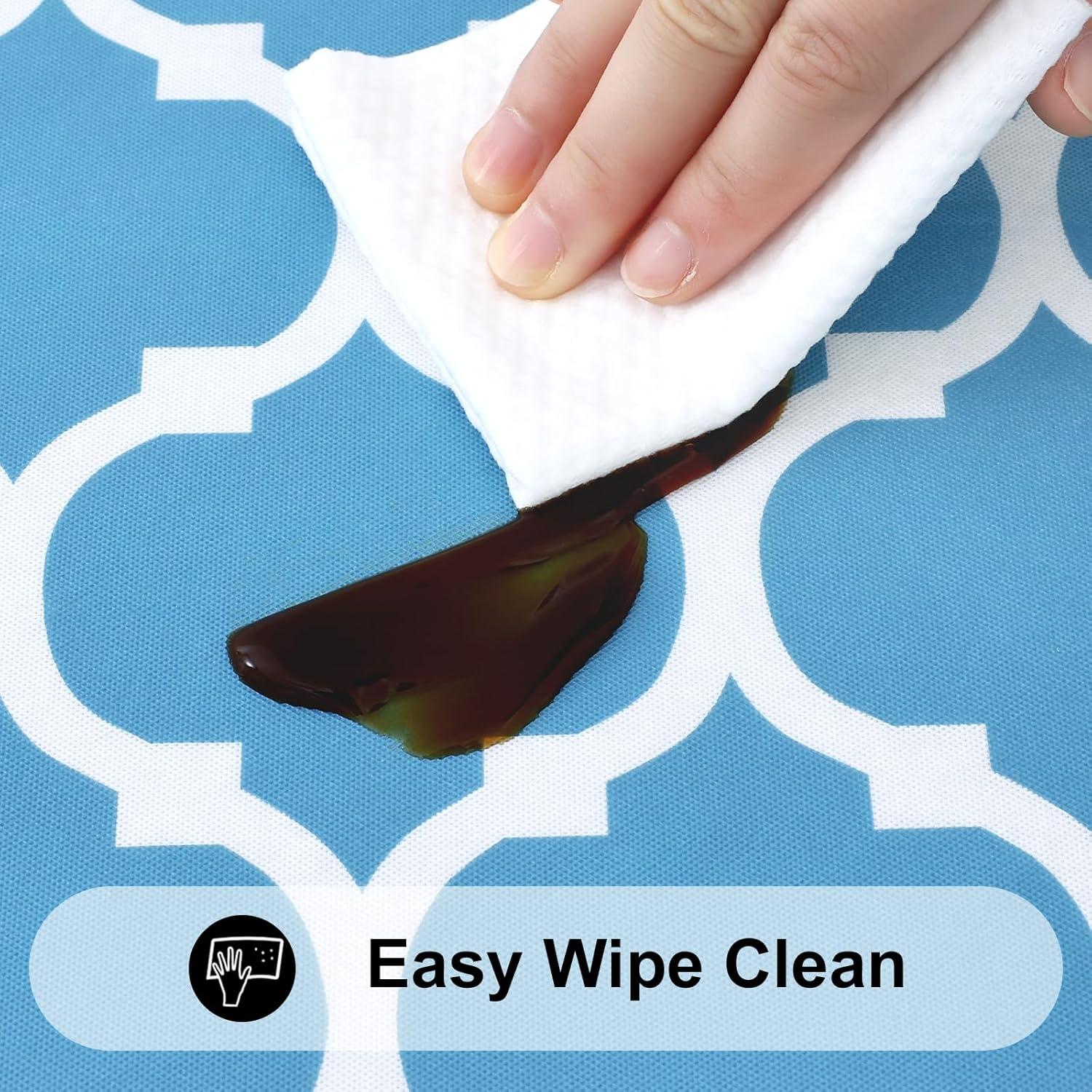 [Waterproof & Wipe Clean] Our table cover surface is made of selected vinyl material, which can effectively waterproof. Spill proof coating makes tablecloth easy to clean, just wipe it off with a damp sponge or rag in a minute.