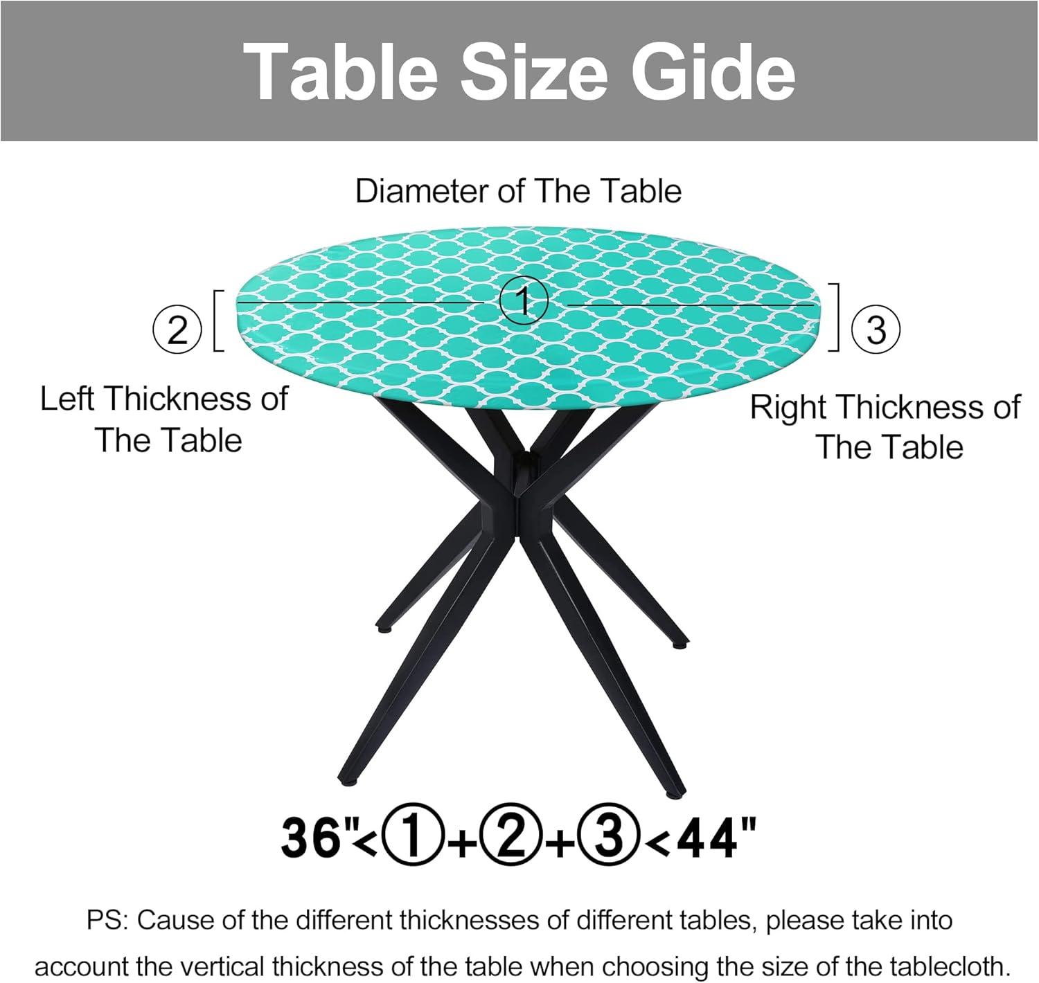 [Fits Suitable] The table covers rectangular tables measuring 44 inches by 36 inches, for a table for 2-4 people. Note that your table should be no thicker than 1.57 inches. Please measure your table before purchasing