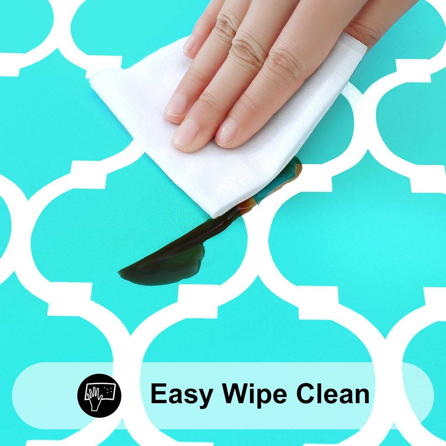 [Waterproof & Wipe Clean] Our table cover surface is made of selected vinyl material, which can effectively waterproof. Spill proof coating makes tablecloth easy to clean, just wipe it off with a damp sponge or rag in a minute.