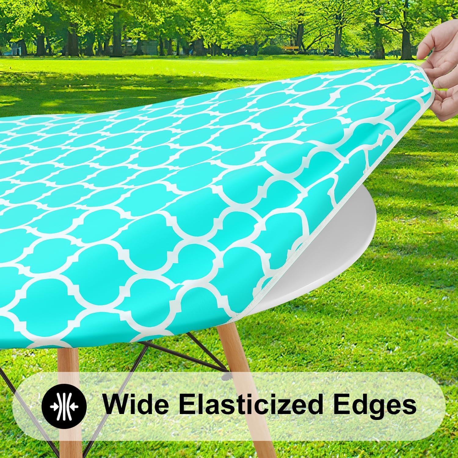 [Secure Fit with Windproof Design] Smiry's elastic-edged tablecloth ensures a snug fit, eliminating movement and the need for clips. Say goodbye to disruptions caused by wind or tugging, and savor your meals undisturbed.