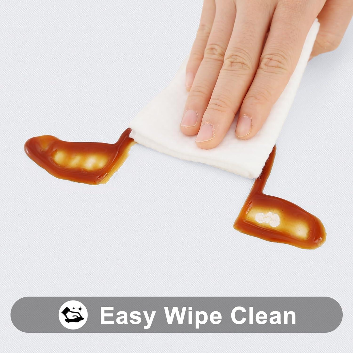 [Waterproof & Wipe Clean] Our table cover surface is made of selected vinyl material, which can effectively waterproof. Spill proof coating makes tablecloth easy to clean, just wipe it off with a damp sponge or rag in a minute.