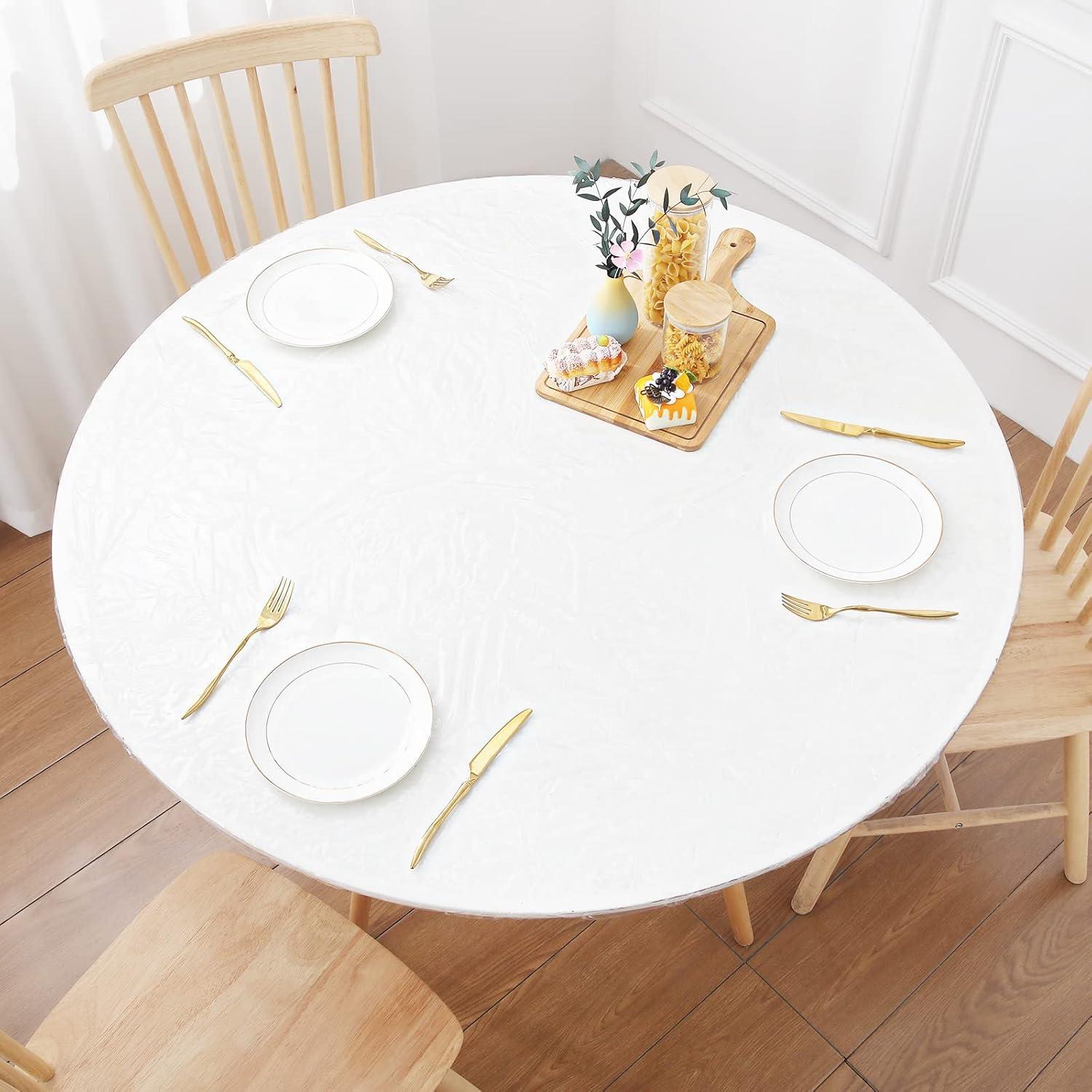 Smiry Round Picnic Tablecloth, Waterproof Elastic Fitted Table Covers for 36" - 44" Tables, Wipeable Vinyl Tablecloths for Camping, Indoor, Outdoor, Clear