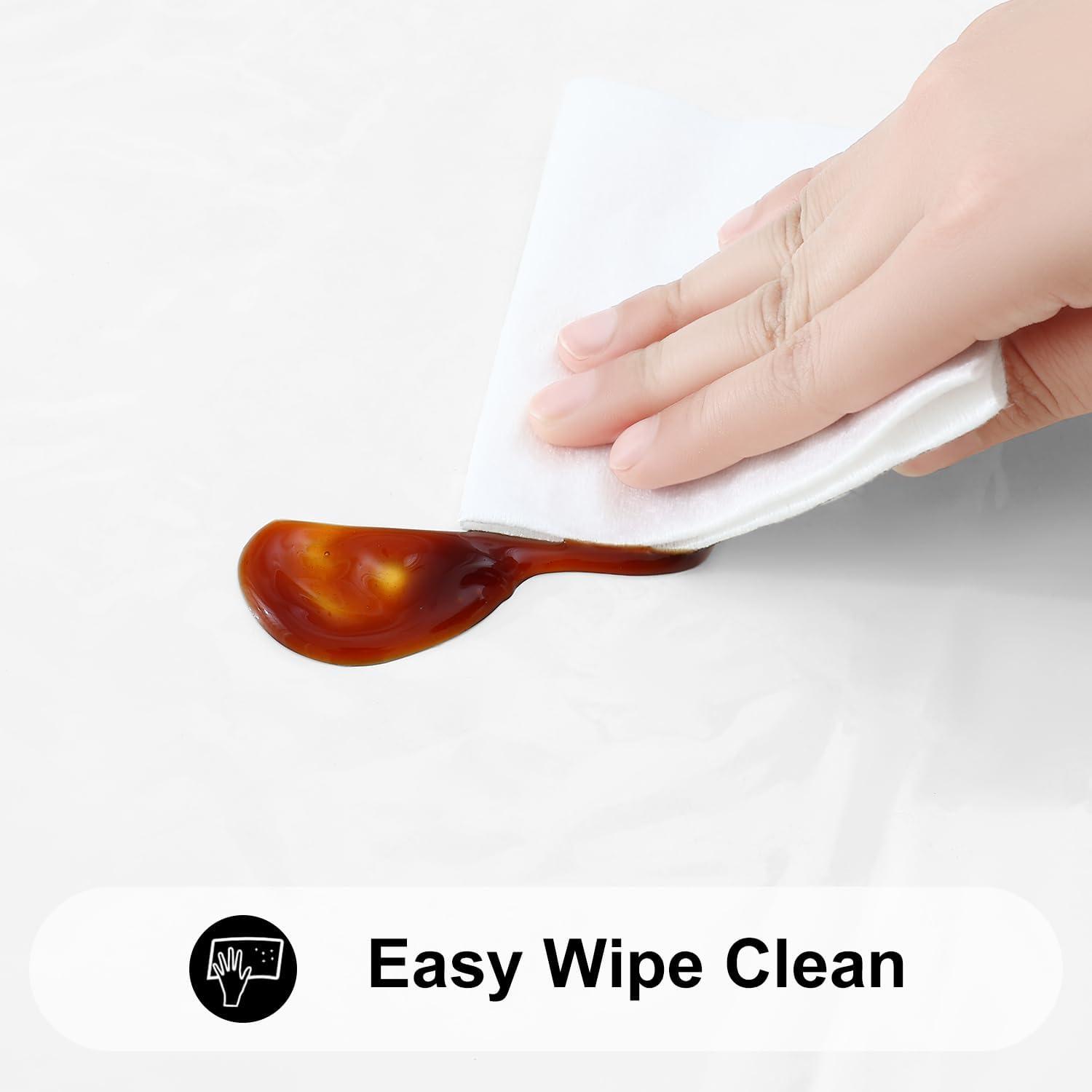 [Waterproof & Wipe Clean] Our table cover surface is made of selected vinyl material, which can effectively waterproof. Spill proof coating makes tablecloth easy to clean, just wipe it off with a damp sponge or rag in a minute.