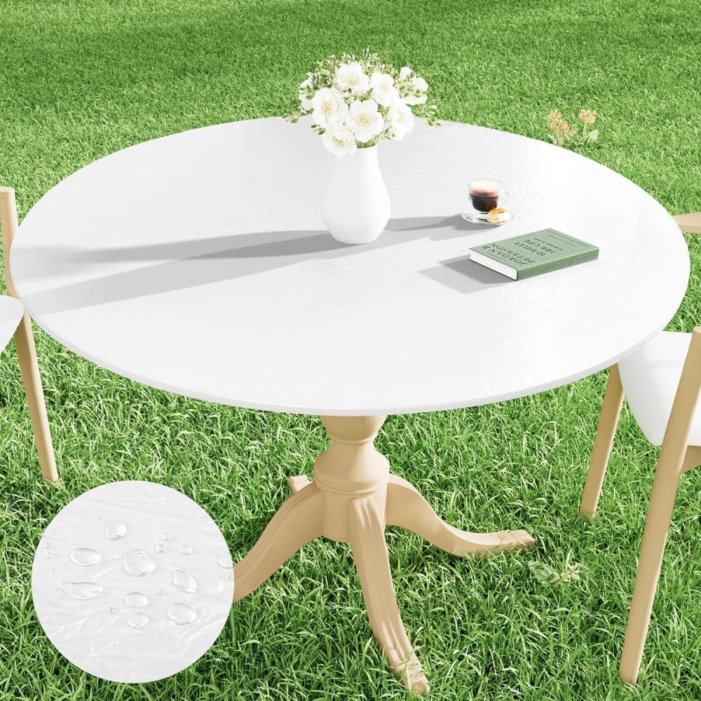 Smiry Round Picnic Tablecloth, Waterproof Elastic Fitted Table Covers for 36″ – 44″ Tables, Wipeable Vinyl Tablecloths for Camping, Indoor, Outdoor, Clear