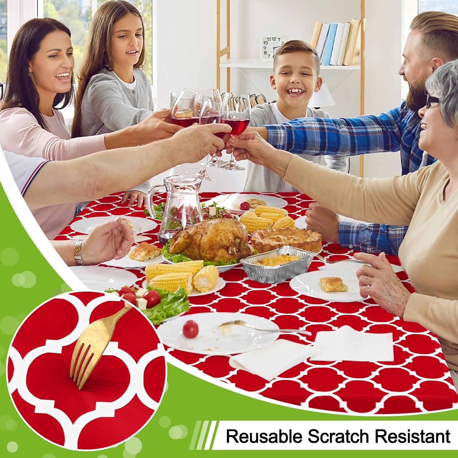 [Premium Material & Reusable] Smiry waterproof tablecloths are made of thick vinyl, thicker than others. Our vinyl tablecloth can be reused multiple times and protect your table from stains and spills, help keep out dust, and keep out dents, chips, and scratches from forming.