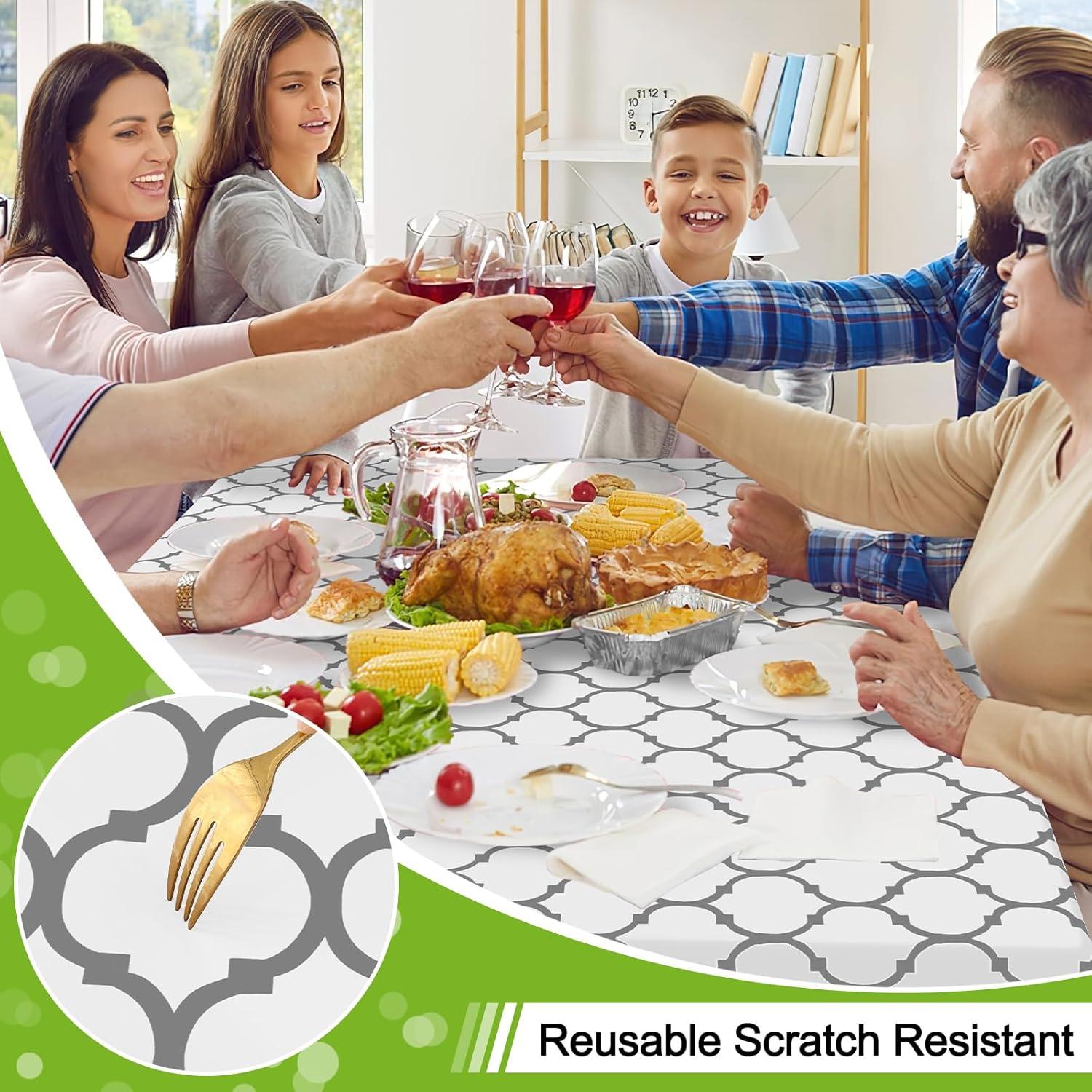 [Non-slip Flannel Backing] Smiry Plastic tablecloth with flannel backing increase the friction between the table and the tablecloth, keeping the tablecloth from sliding and causing food spills. Suitable for families with small children and pets.