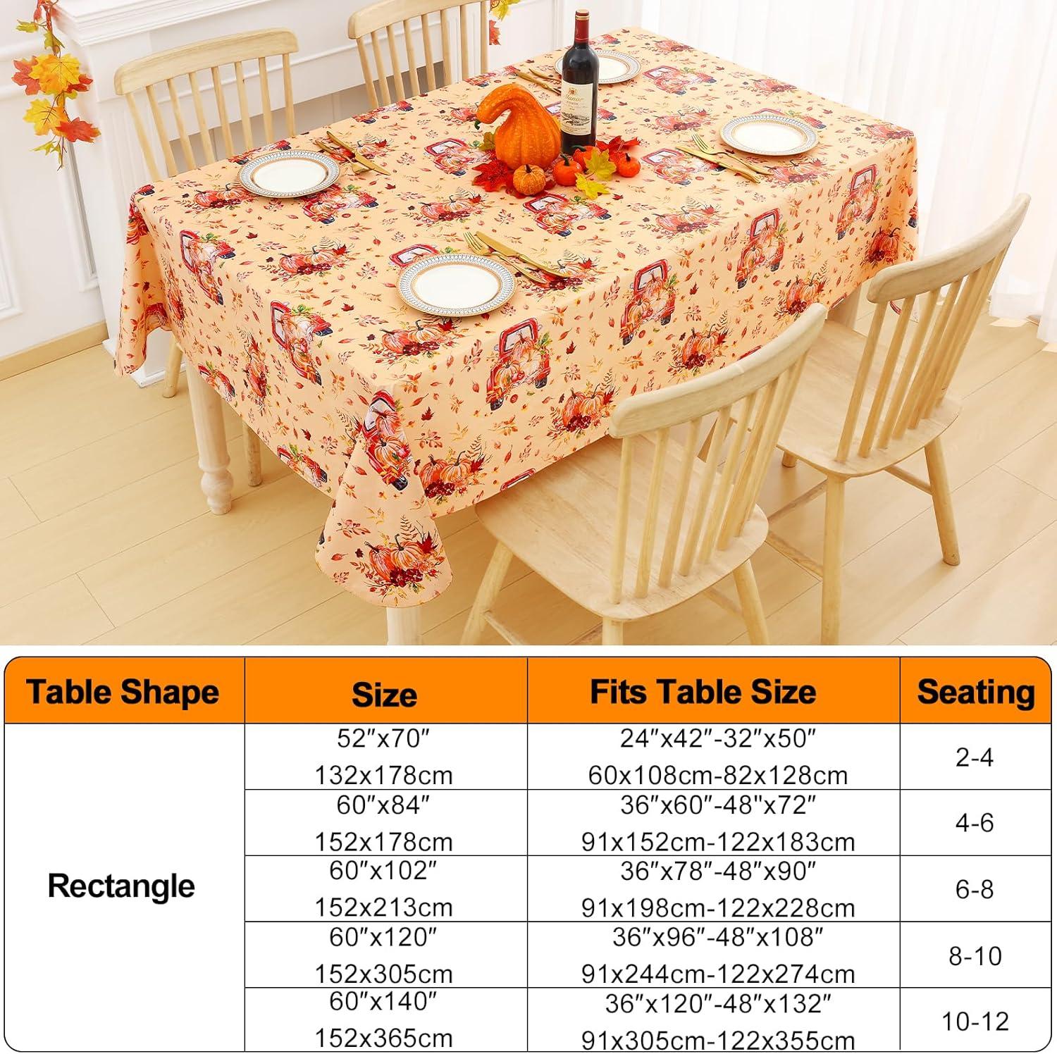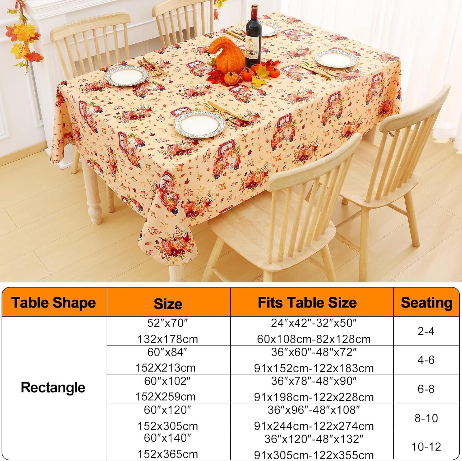 [Know Your Table Sizes] Smiry round tablecloth measures 36″-48″ inches and fits round tables measuring 36″ to 48″ , seating up to 2 to 4 adults. To purchase a more appropriate table cover, take a few seconds to measure your table before purchasing.