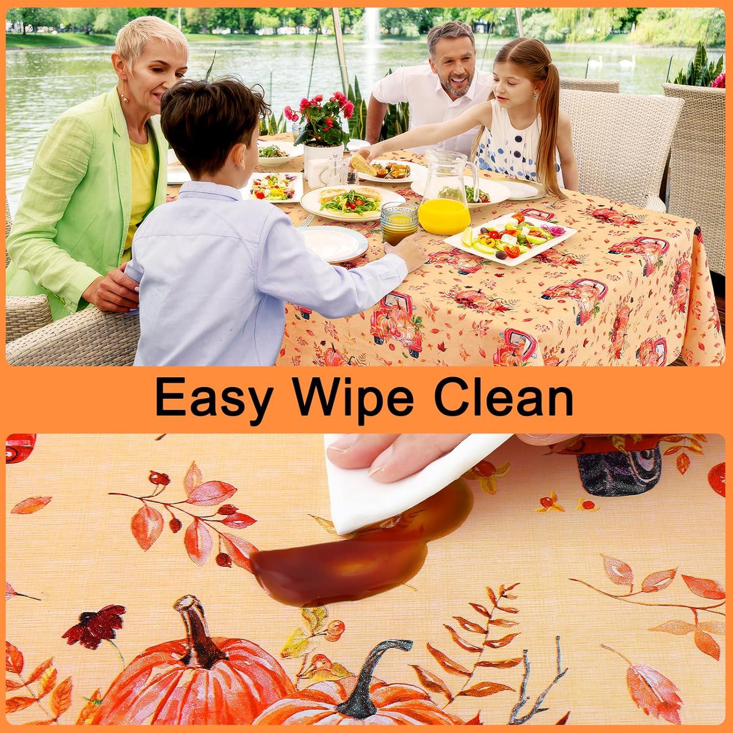 [Waterproof and Wipe Clean] The waterproof vinyl surfaces insulate our table cloths from water, milk, oil and other stains. Just rub with a damp cloth or sponge to remove the stain and look fresh.
