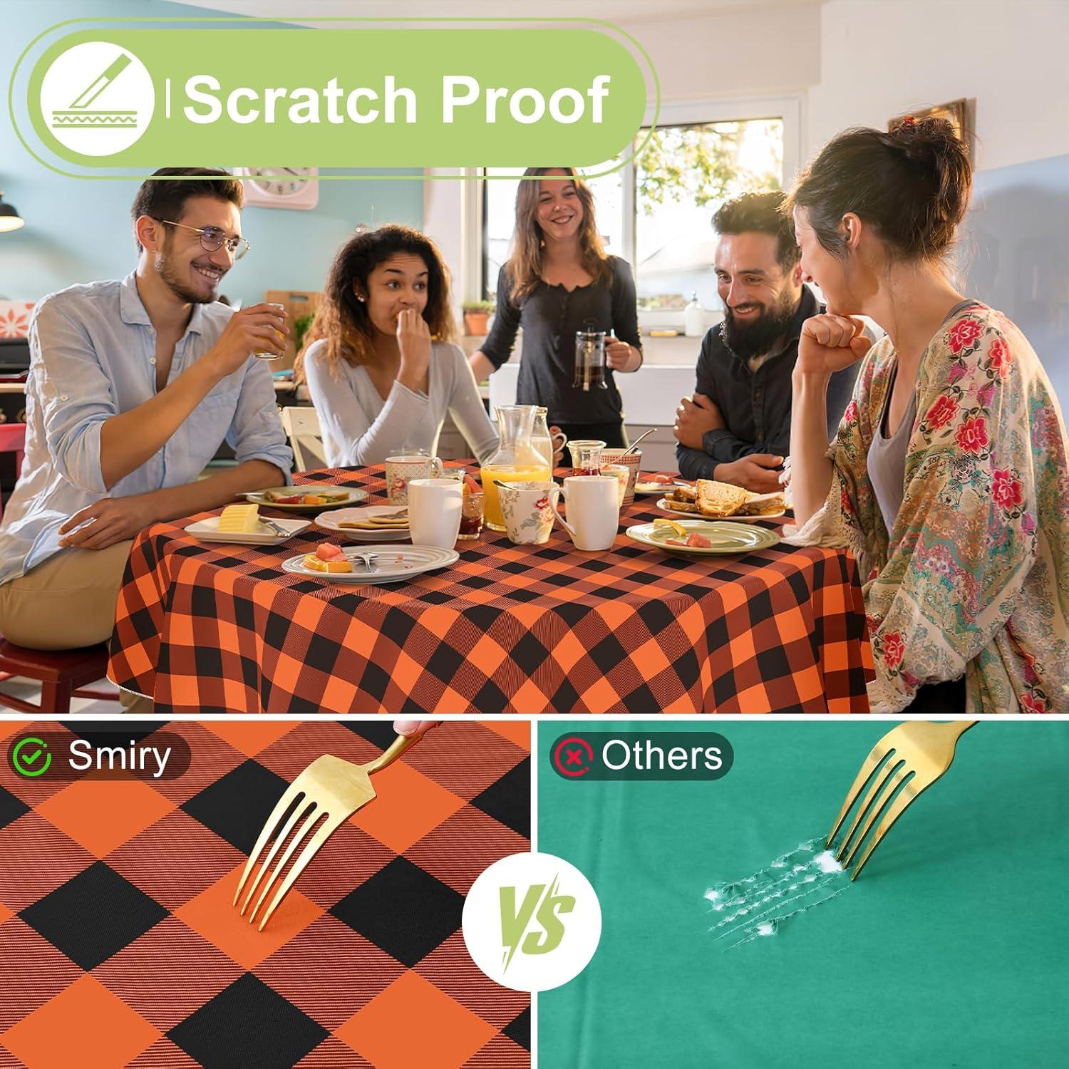 Smiry Round Plastic Table Cloth, Waterproof Vinyl Tablecloth with Flannel Backing, Wipeable Buffalo Plaid Table Cover for Dining, Indoor and Outdoor (Khaki & White, 60" Round)(Orange & Black)