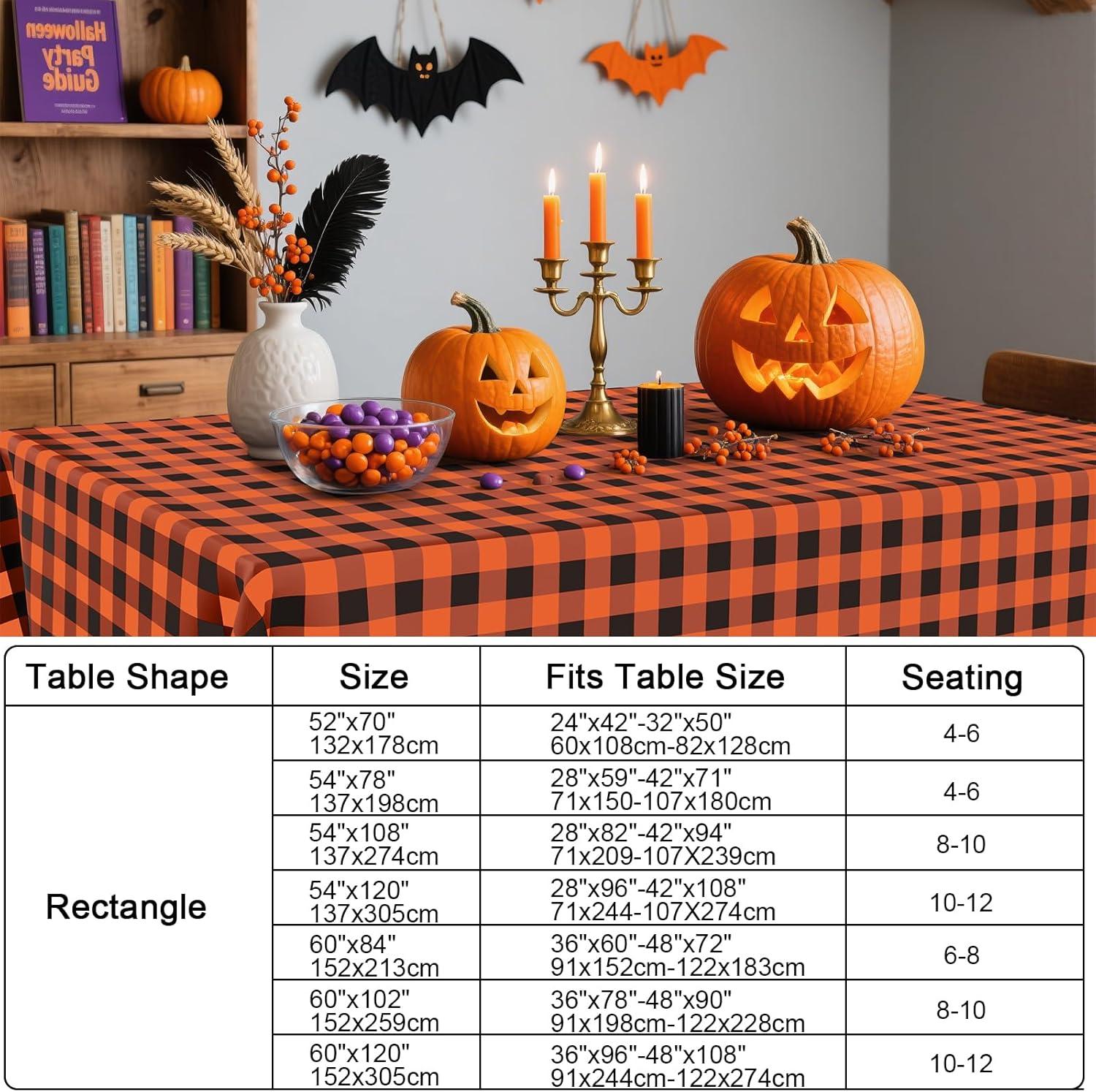 Smiry Round Plastic Table Cloth, Waterproof Vinyl Tablecloth with Flannel Backing, Wipeable Buffalo Plaid Table Cover for Dining, Indoor and Outdoor (Khaki & White, 60″ Round)(Orange & Black)