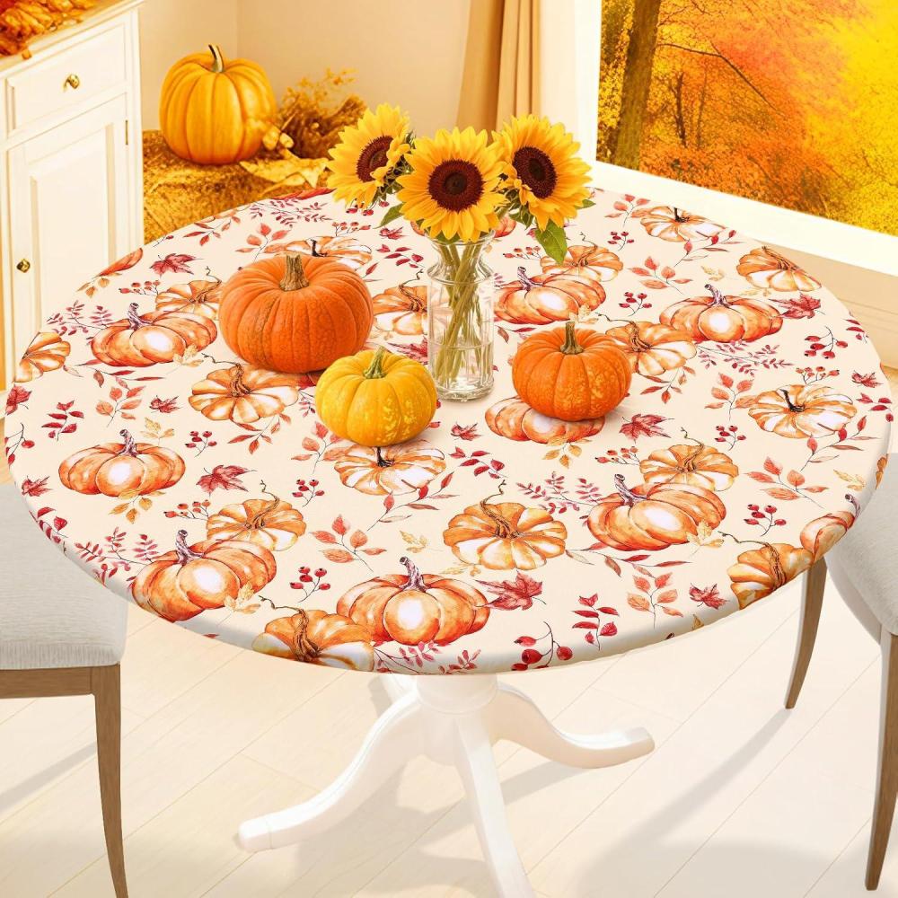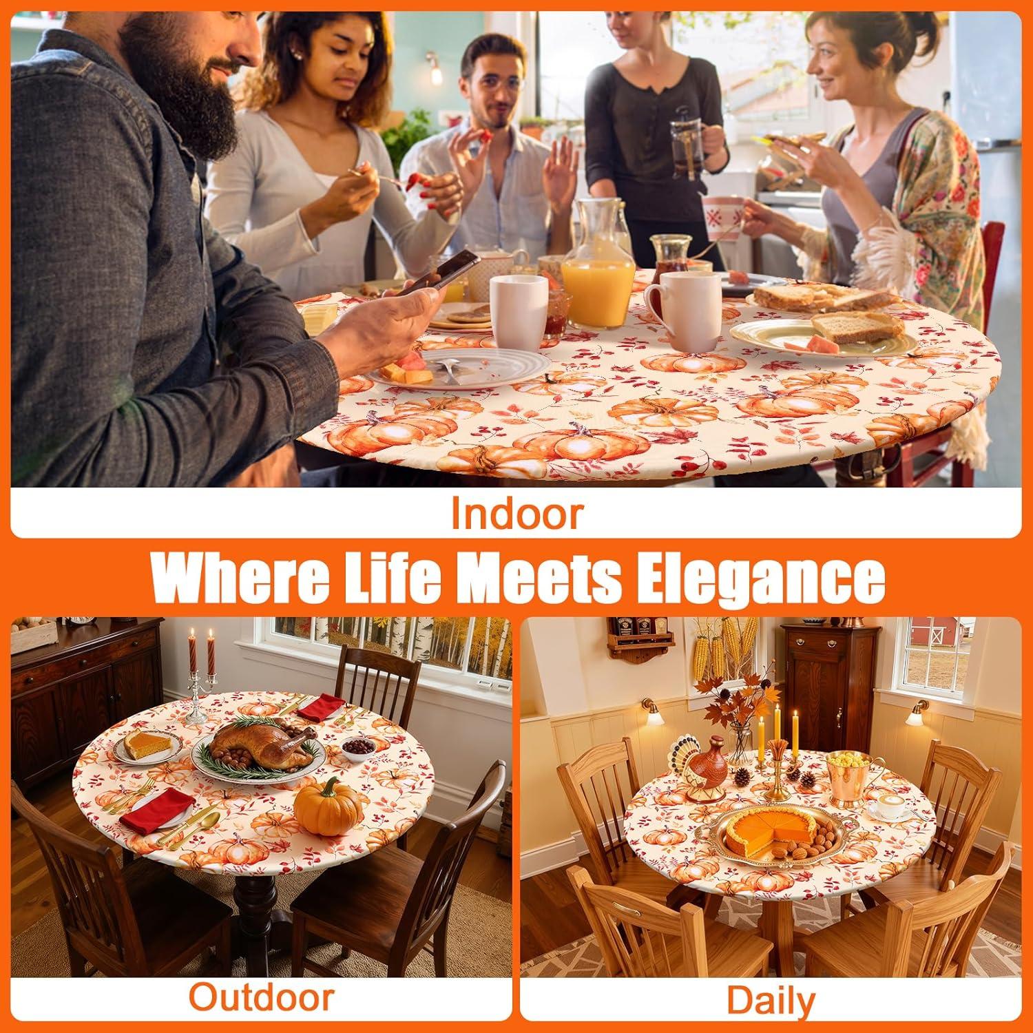 [Waterproof & Easy Cleaning] The round table cover feature with a waterproof surface that causes liquids to bead up, preventing spills from soaking into the fabric. Machine washable for effortless cleaning and upkeep, the tablecloth retains its original quality even after multiple washes.