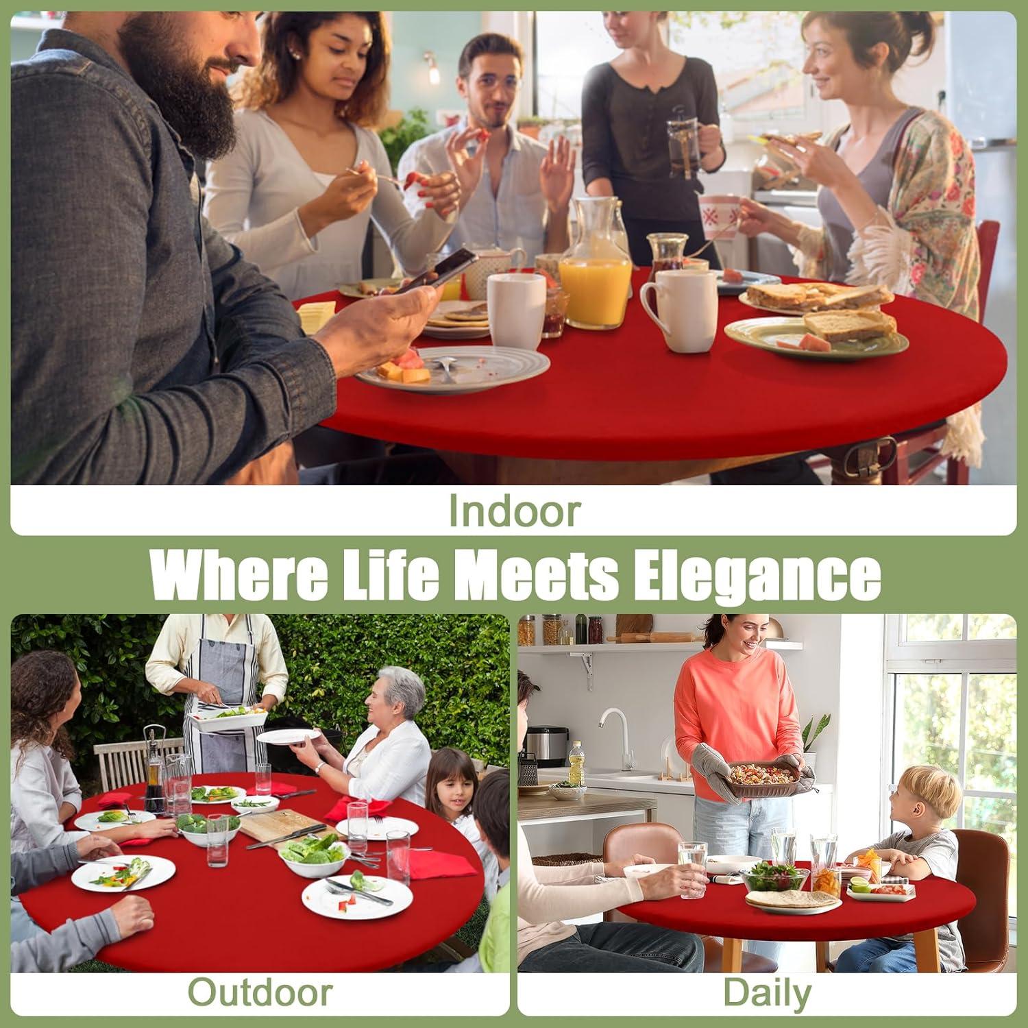 [Reusable & Tear Proof] Designed with sturdy construction, this elastic tablecloth is constructed to withstand regular wear and tear which combines practicality with elegance, making it ideal for both everyday use and special occasions.