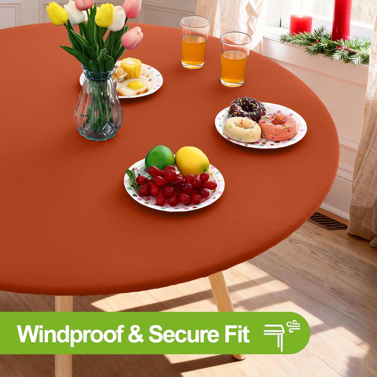 imageSmiry Round Spandex Tablecloth Elastic Fitted Washable Tablecloths for 36quot44quot Tables Waterpoof Stretch Picnic Table Cover for Dining Indoor and Outdoor BlueRust