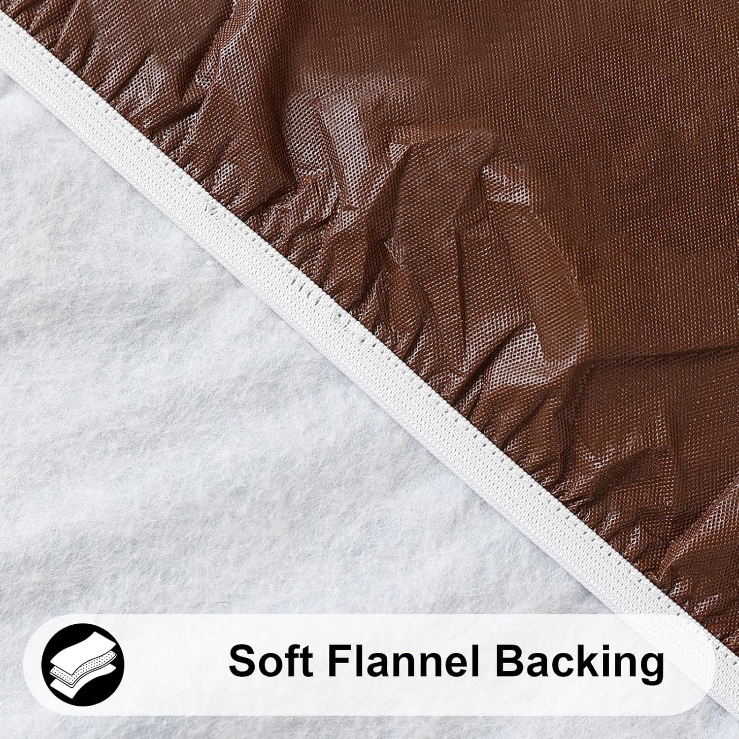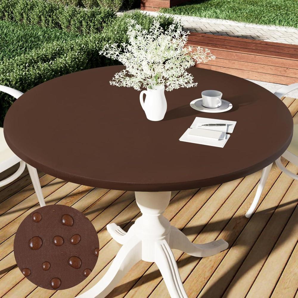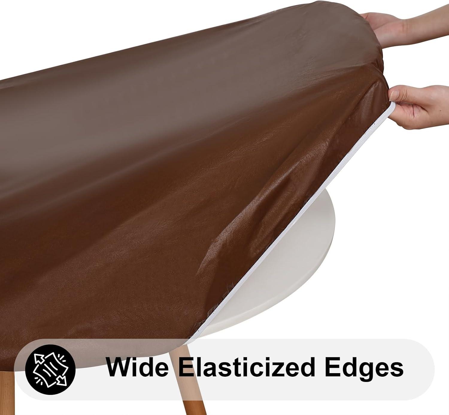 Smiry Round Table Cloth Cover, Elastic Fitted Flannel Backed Vinyl Tablecloths for 36"-44" Round Tables, Waterproof Wipeable Table Covers for Indoor, Outdoor, Picnic and Camping, Coffee