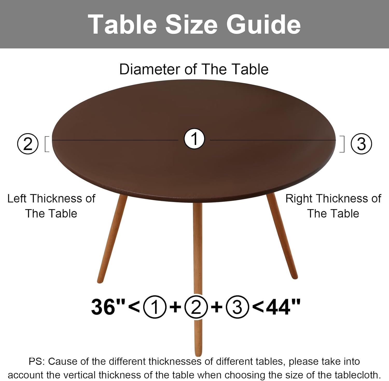 【Measurements】 The round table cloth fits 36''-44'' dining tables, which meets for 2-3 people use.​ Please be sure to accurately measure the size of the tabletop and the thickness of the table when purchasing.