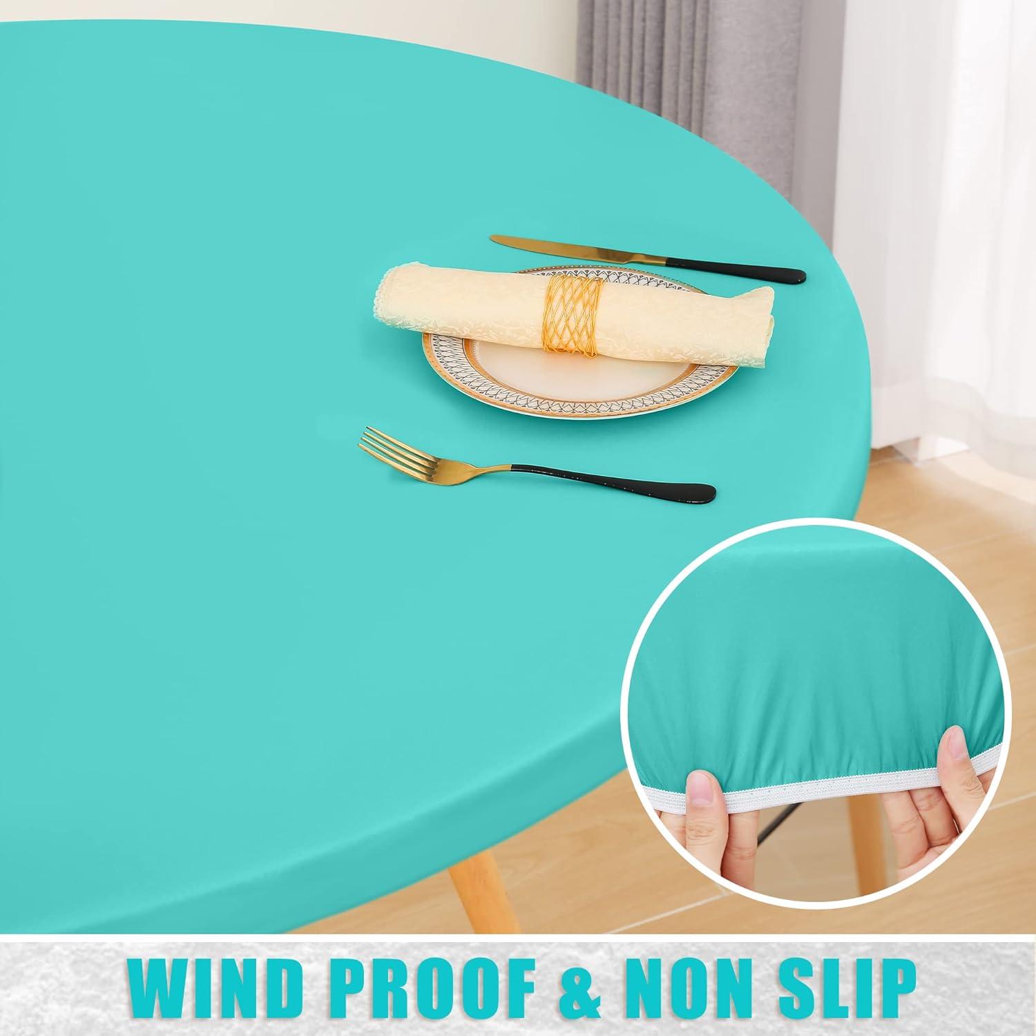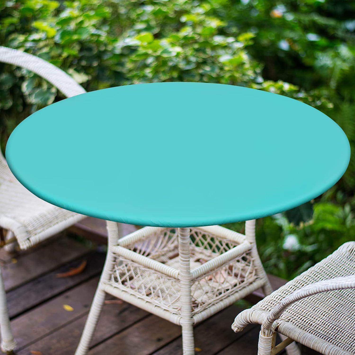 Smiry Round Table Cloth Cover, Elastic Fitted Flannel Backed Vinyl Tablecloths for 36"-44" Round Tables, Waterproof Wipeable Table Covers for Indoor, Outdoor, Picnic and Camping, Teal