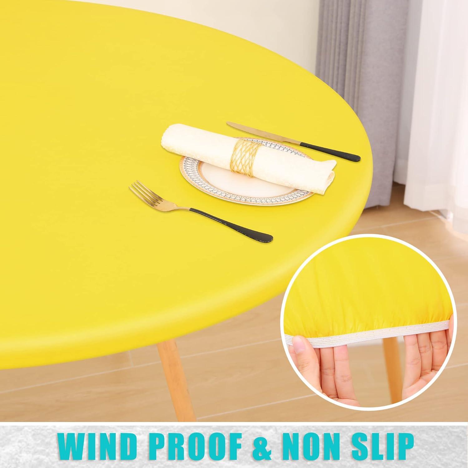 imageSmiry Round Table Cloth Cover Elastic Fitted Flannel Backed Vinyl Tablecloths for 36quot44quot Round Tables Waterproof Wipeable Table Covers for Indoor Outdoor Picnic and Camping Yellow