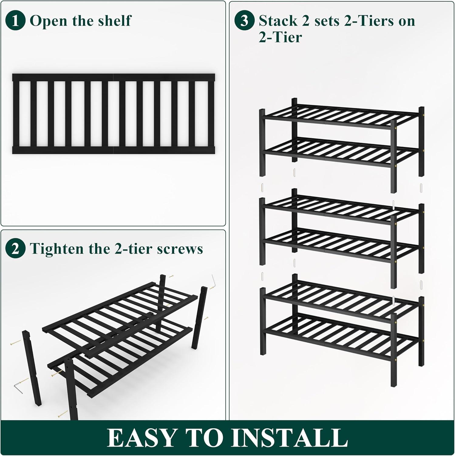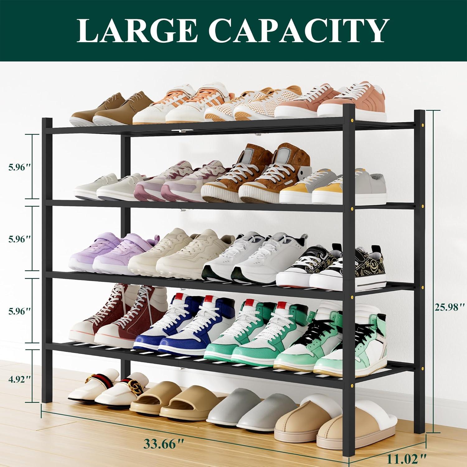 [Large Capacity & Sturdy] 4 tiers measuring 26.77″ W × 11.02″ D × 25.98″ H, each shelf holds up to 30 lbs, suitable for shoes, bags, baskets, plants, or other daily essentials