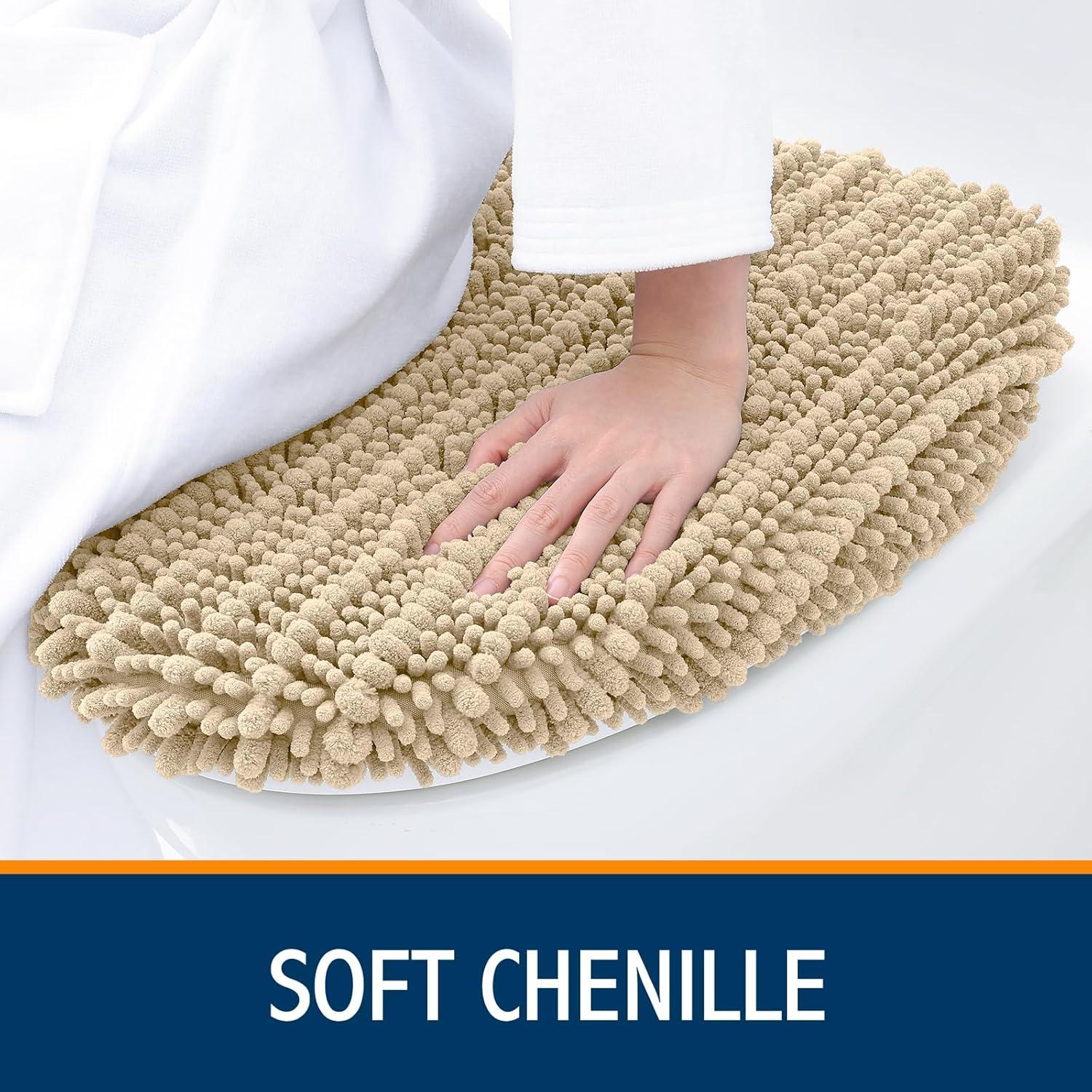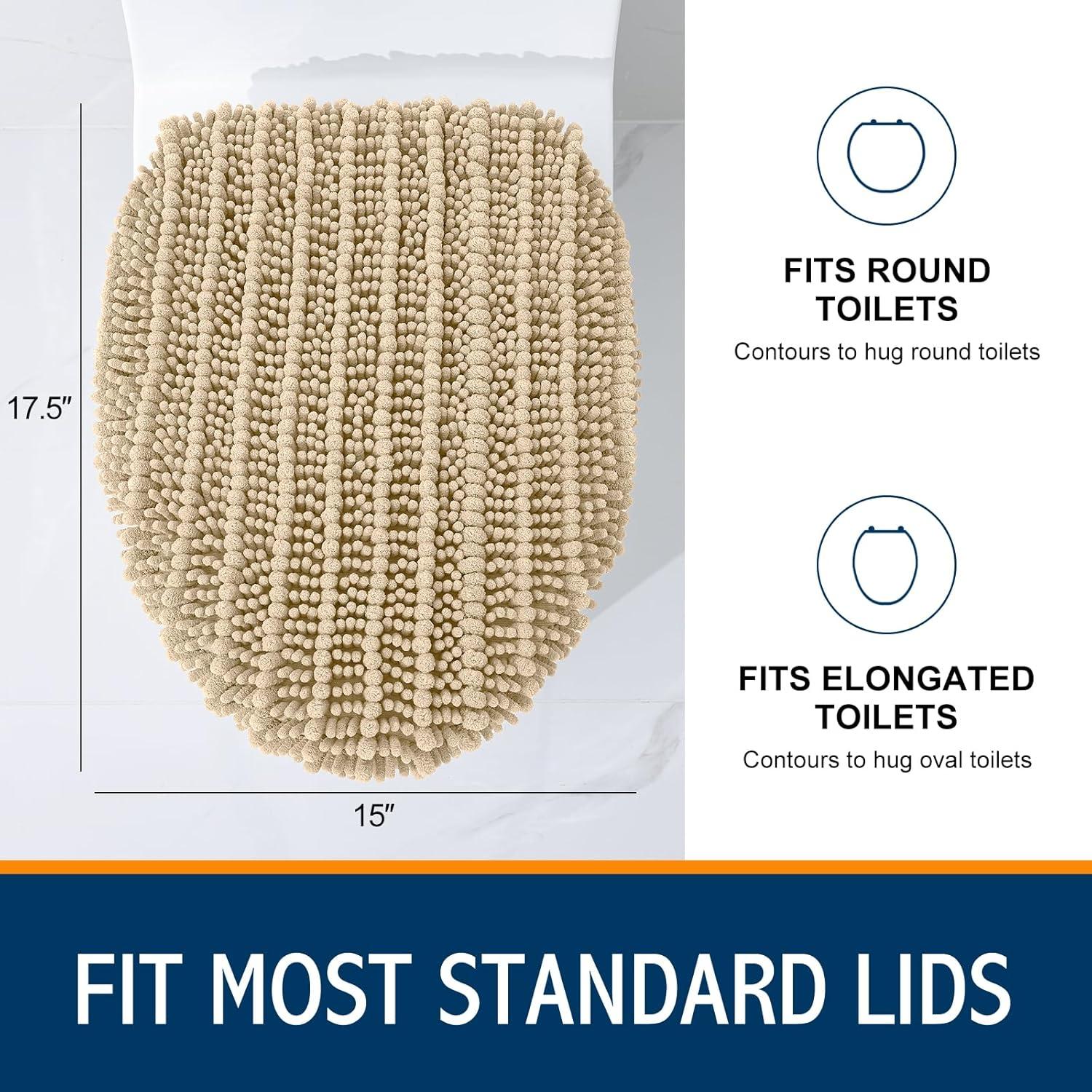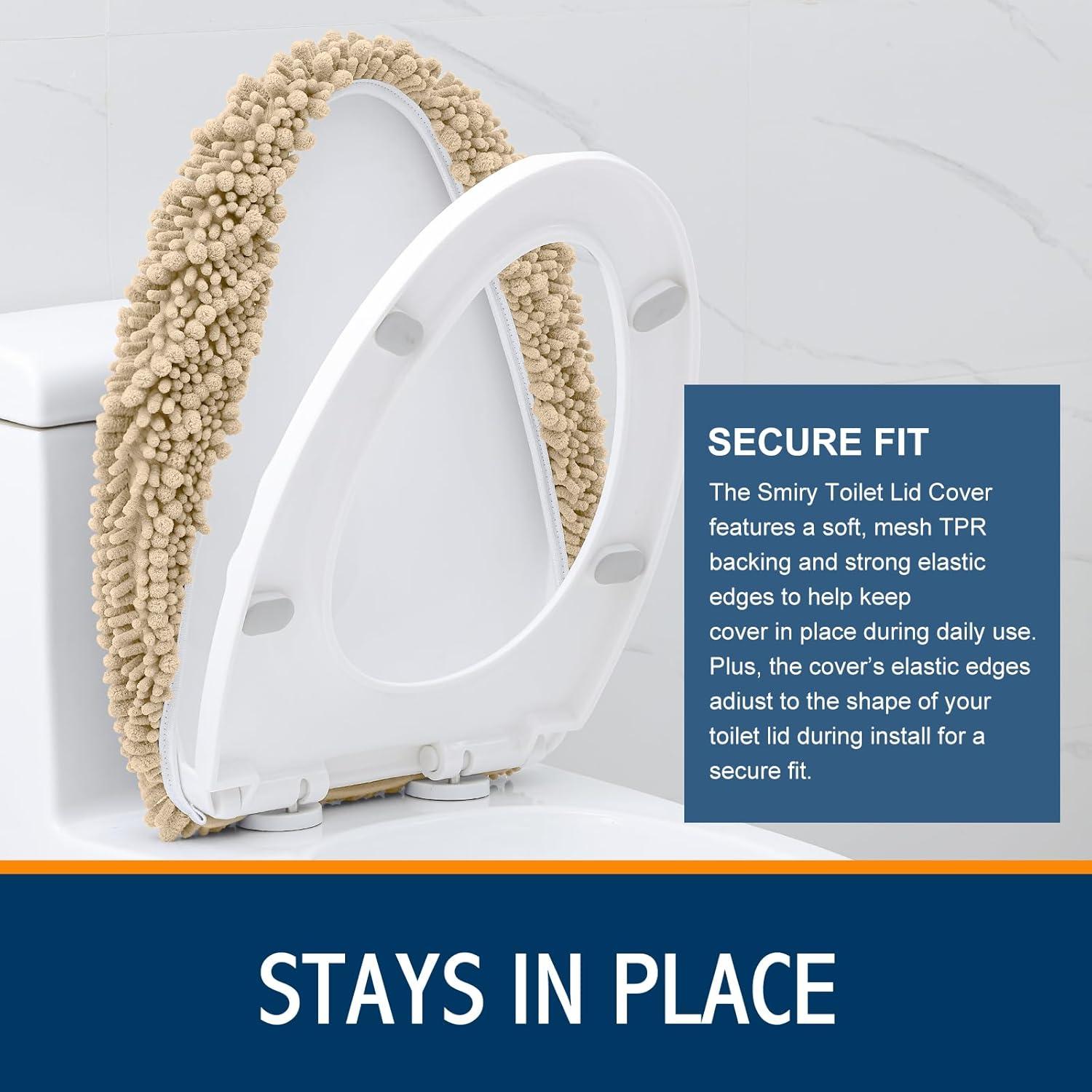 Smiry Soft Chenille Bathroom Toilet Lid Cover, Stays in Place Rubber Backing Covers, Machine Washable, 17.5x15, Fits Most Round, Elongated and Oblong Lids, Accessories Decor, Grey(Beige)
