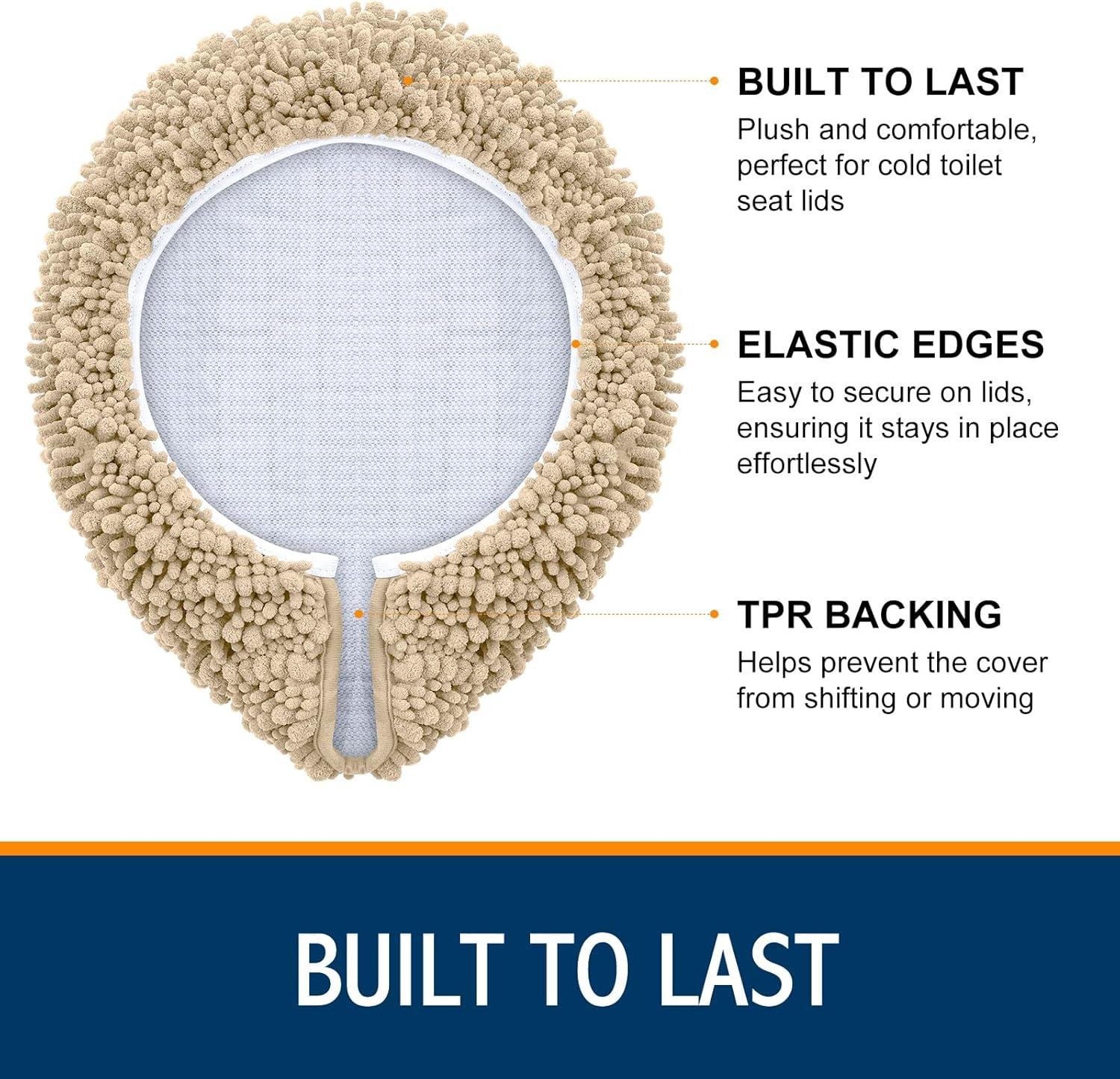 [SOFT AND COMFORTABLE] Plush chenille topside is ultra soft and comfortable to sit on; premium fabric adds an extra layer of comfort while helping to protect your toilet lid from scratches and damage