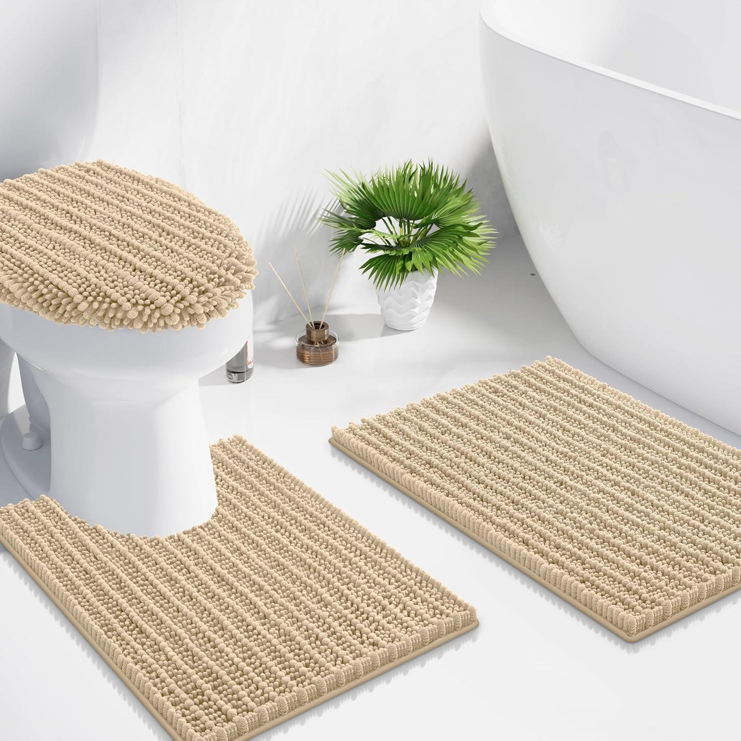 imageSmiry Bathroom Rugs U Shaped 20x20 and Toilet Lid Cover 175x15 Soft and Absorbent Bath Mat Machine Washable NonSlip Plush Carpet Runner for Tub Shower and Floor Home DecorGrey