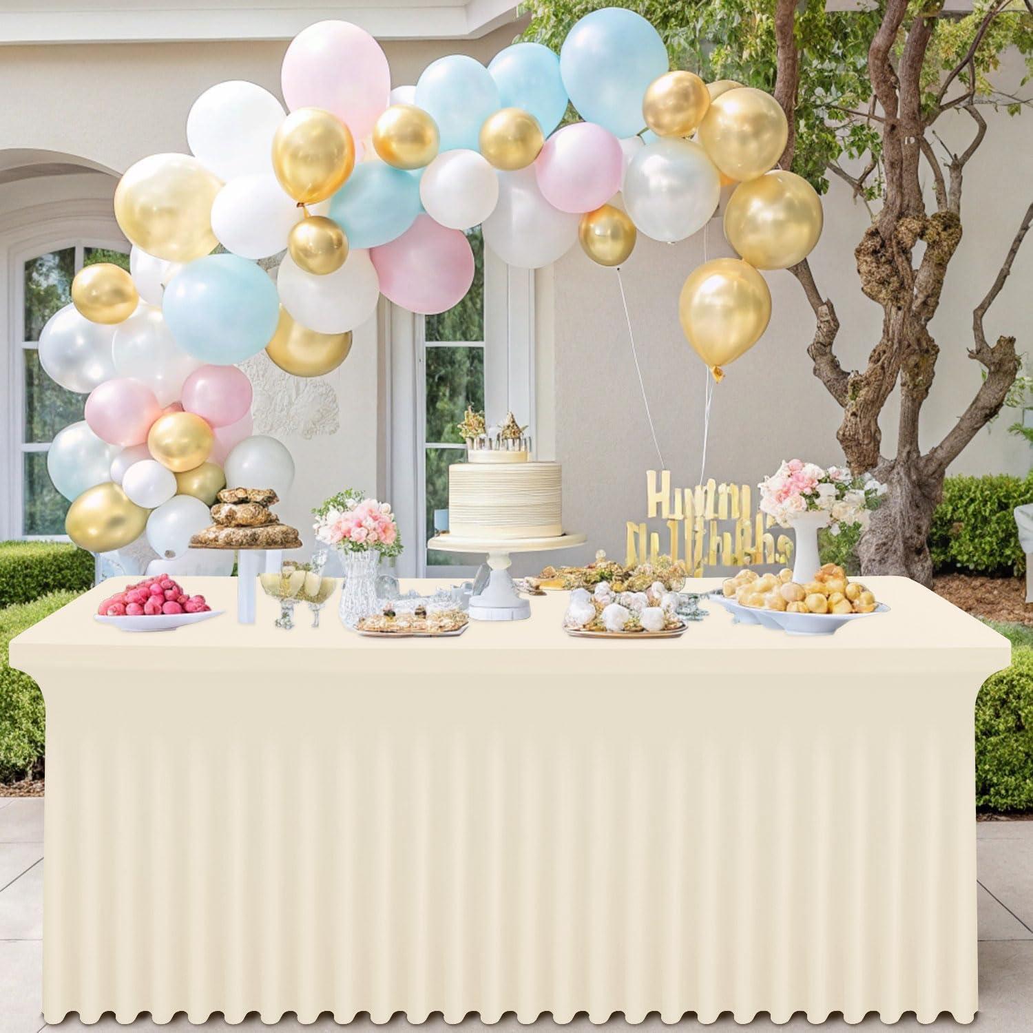 Smiry Spandex Tablecloth 6 Pack, Elastic Fitted Stretch Tablecloth for 6FT Rectangle Tables, Waterproof Washable Table Cover Skirt for Wedding, Banquet & Parties (Black, 72Lx30Wx30H Inch)(Beige)
