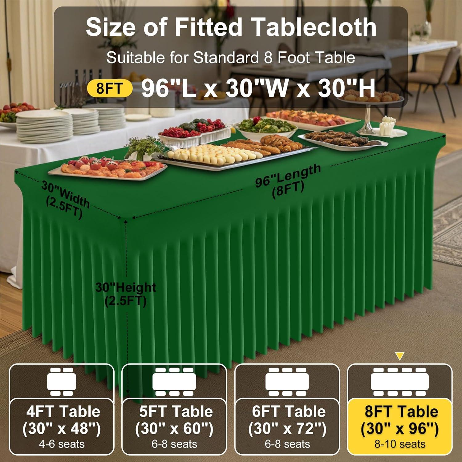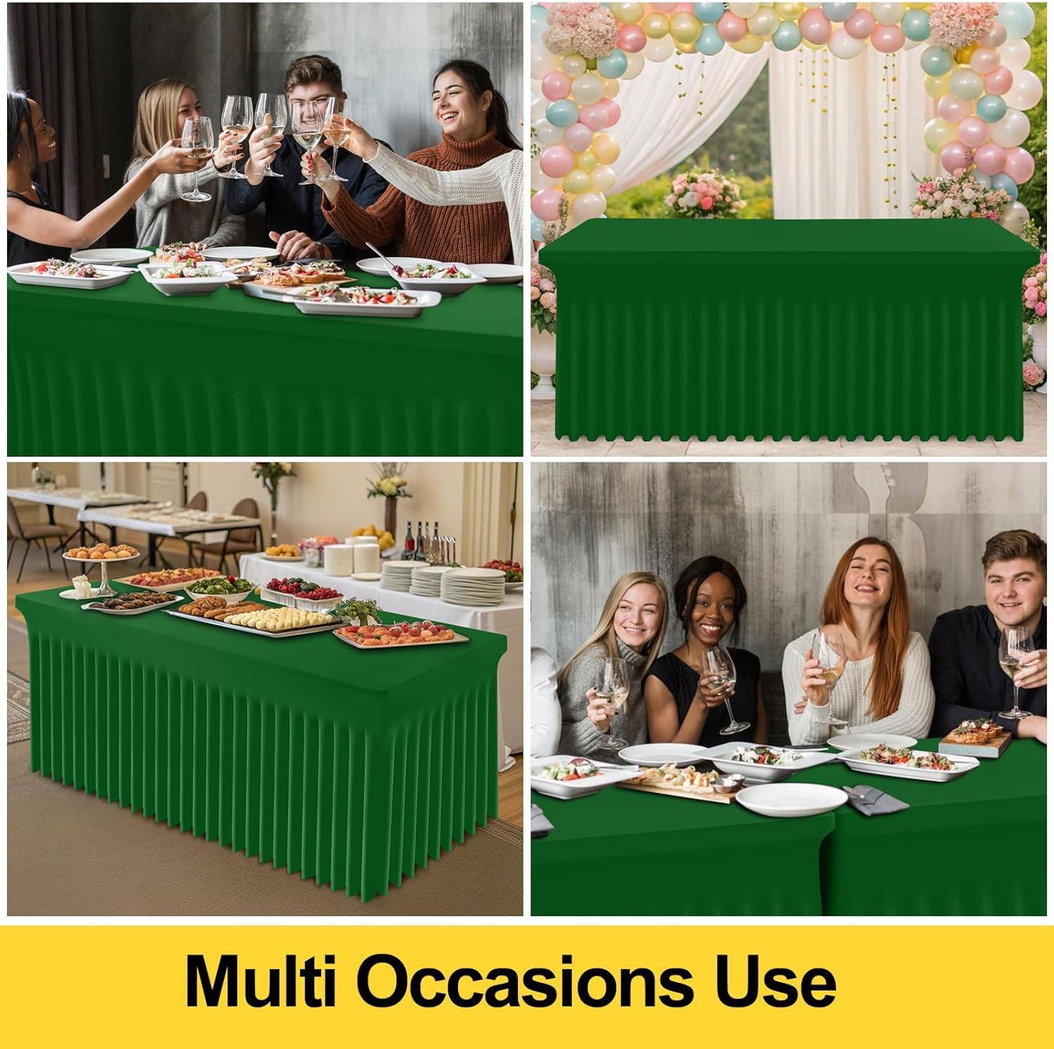 Smiry Spandex Tablecloth 6 Pack, Elastic Fitted Stretch Tablecloth for 6FT Rectangle Tables, Waterproof Washable Table Cover Skirt for Wedding, Banquet & Parties (Black, 72Lx30Wx30H Inch)(Emerald Green)