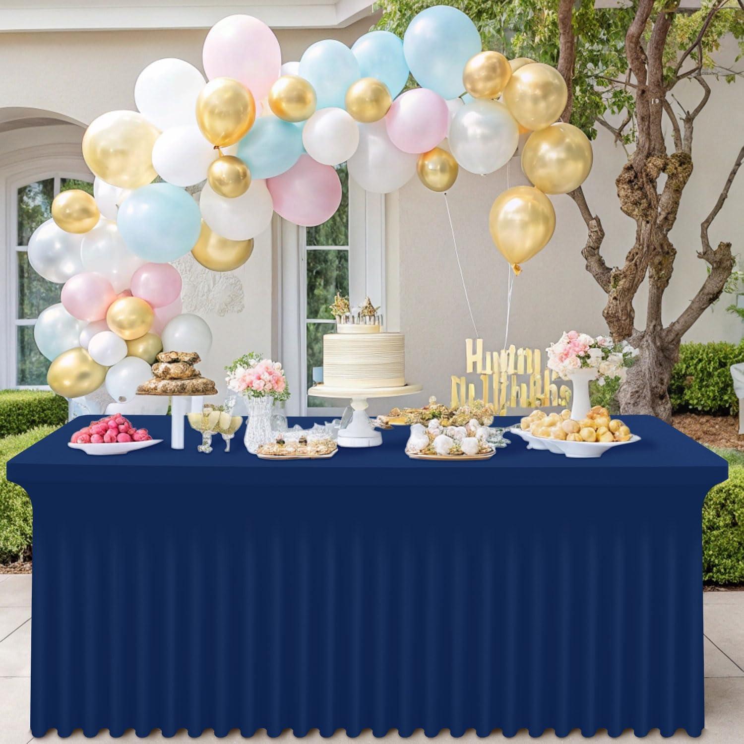 Smiry Spandex Tablecloth 6 Pack, Elastic Fitted Stretch Tablecloth for 6FT Rectangle Tables, Waterproof Washable Table Cover Skirt for Wedding, Banquet & Parties (Black, 72Lx30Wx30H Inch)(Navy)