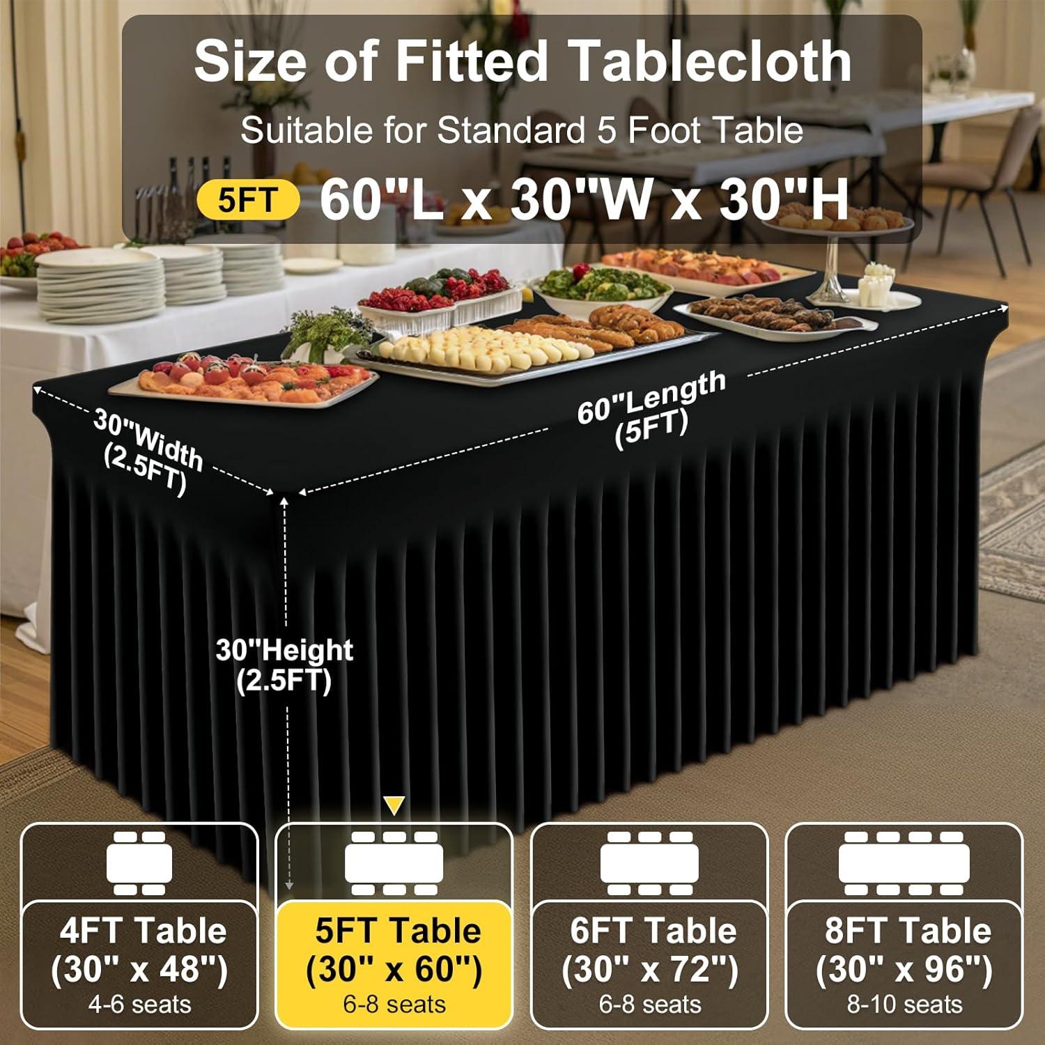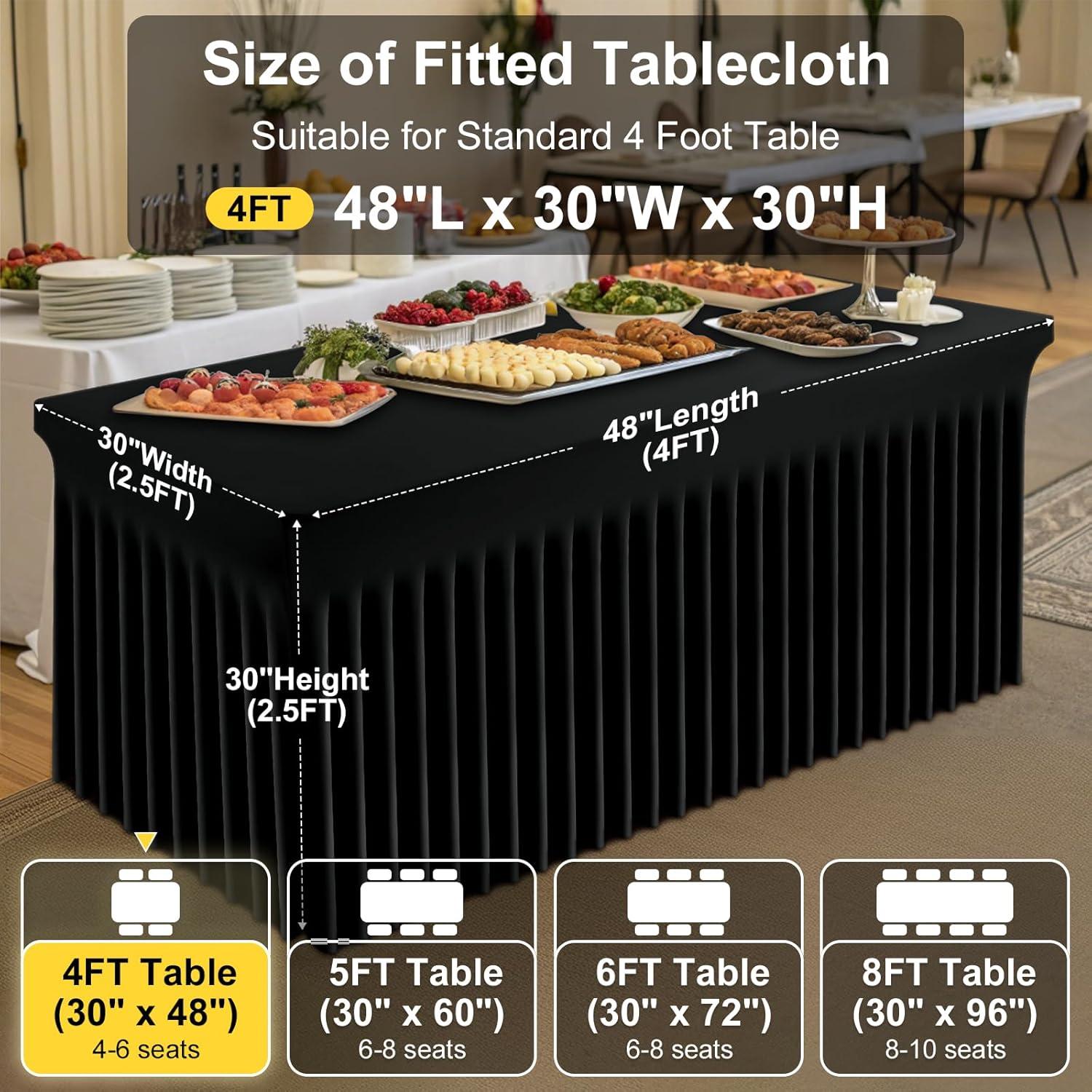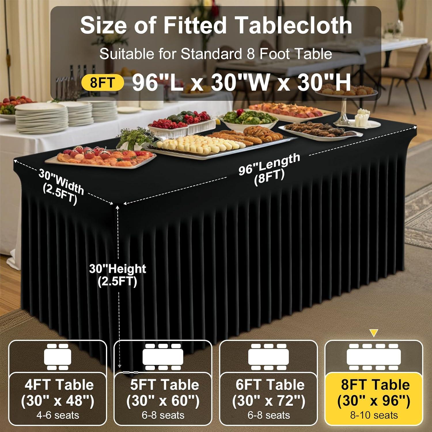 [Measurement] Our banquet tablecloth dimensions for a 6-foot table are 72 inches in length, 30 inches in width, and 30 inches in height. Please measure your table to ensure you choose the appropriate size before making a purchase.