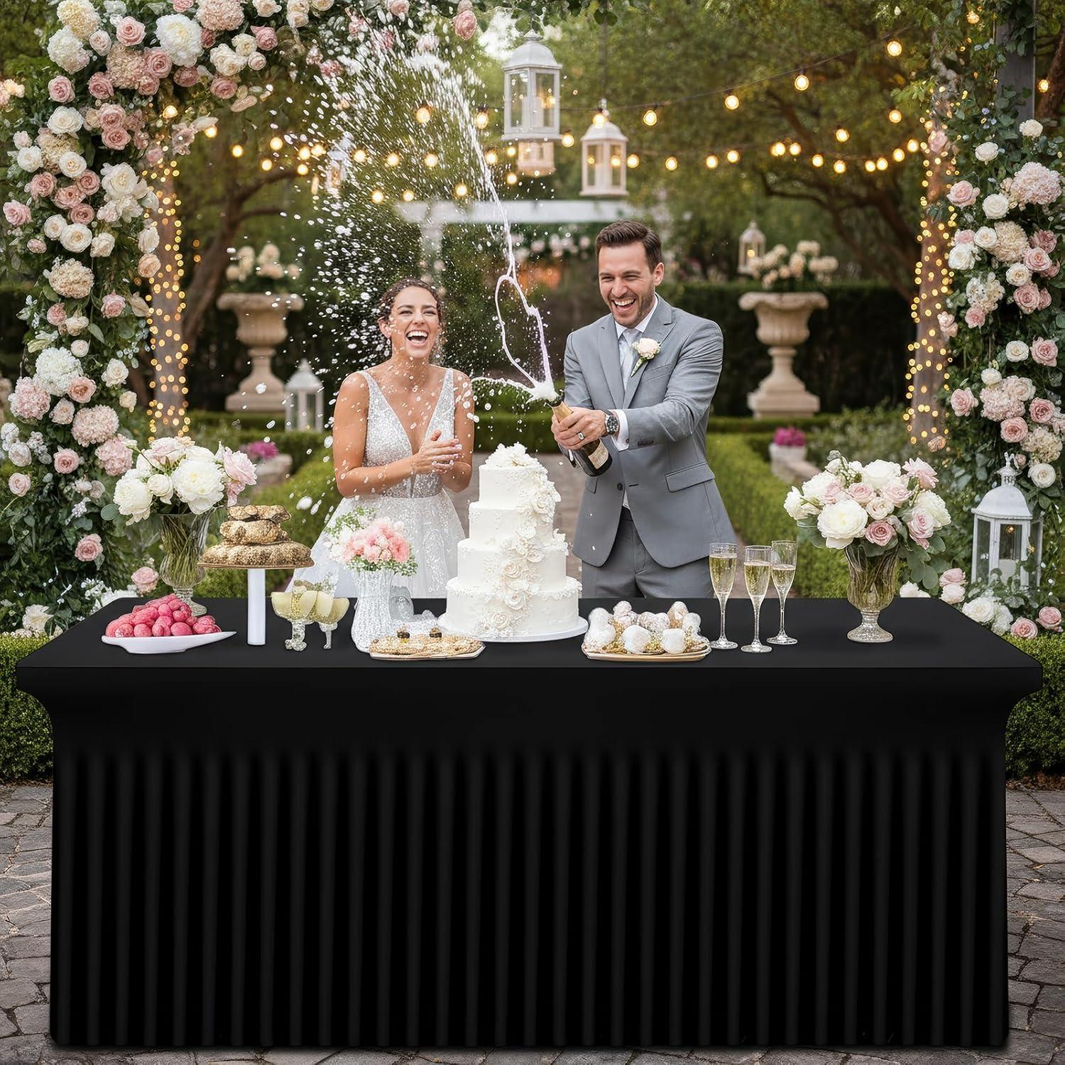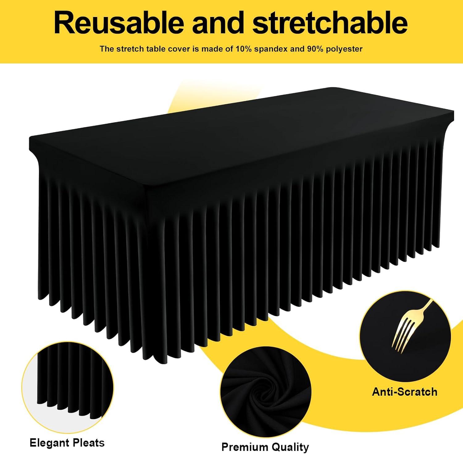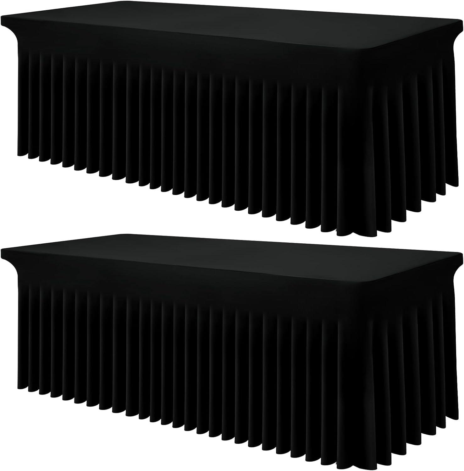Smiry Spandex Tablecloth, Elastic Fitted Stretch Tablecloth for 6FT Rectangle Tables, Waterproof Washable Table Cover Skirt for Outdoor, Wedding, Banquet & Parties (White, 72Lx30Wx30H Inch)(Black)