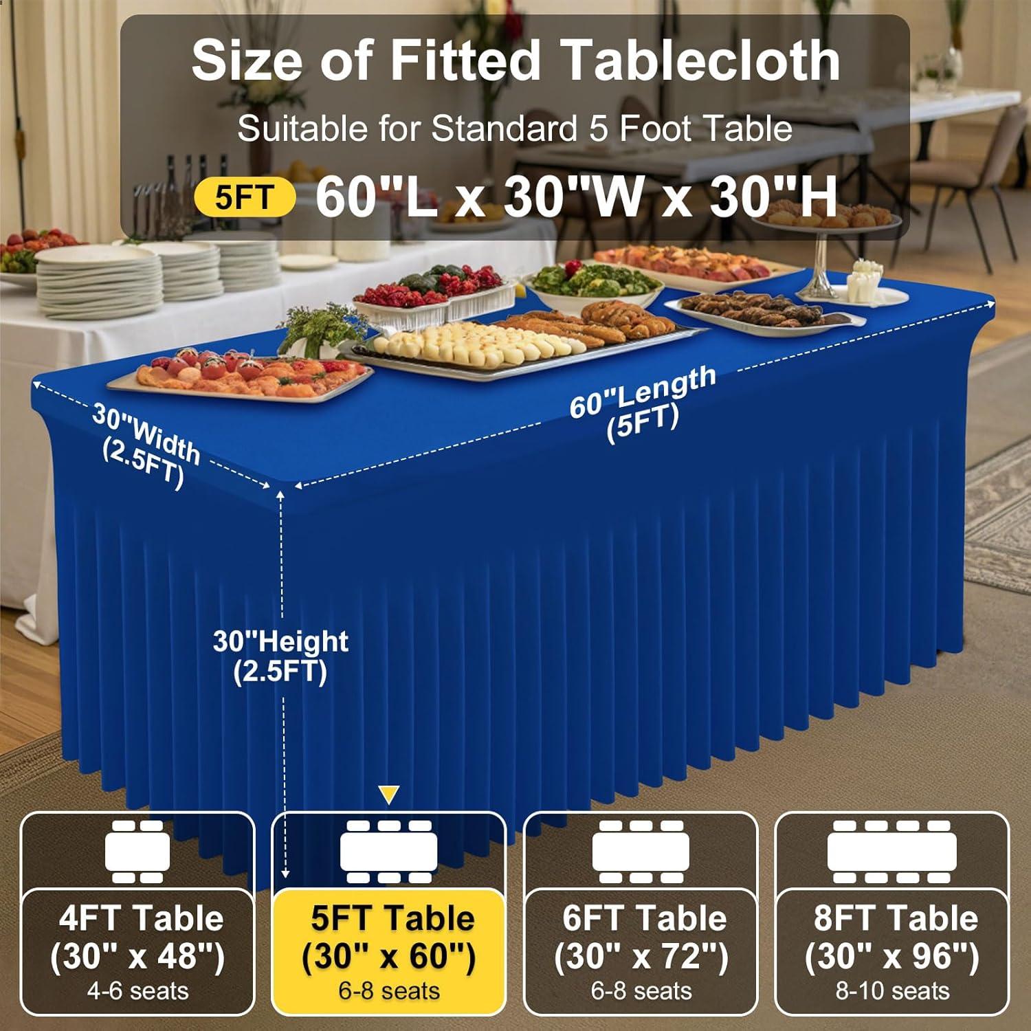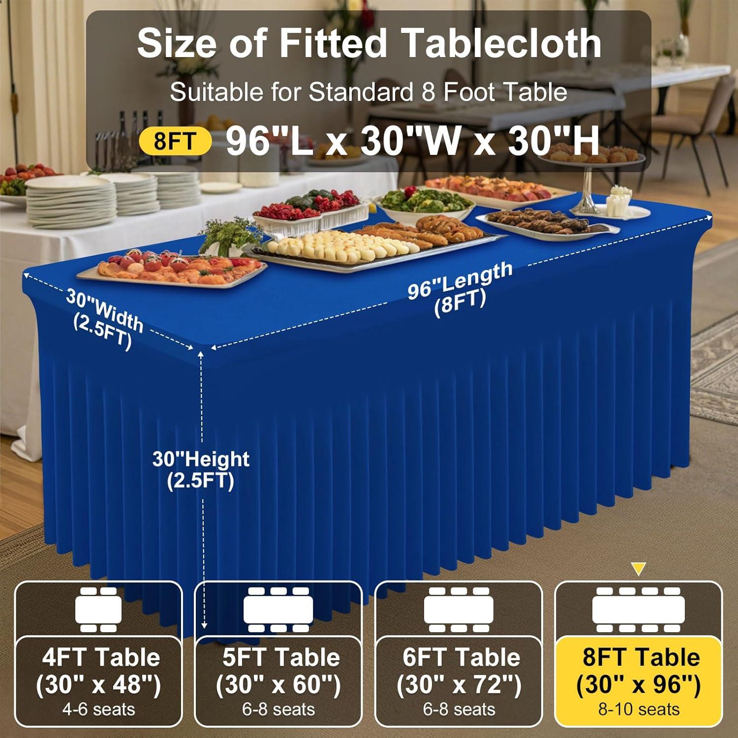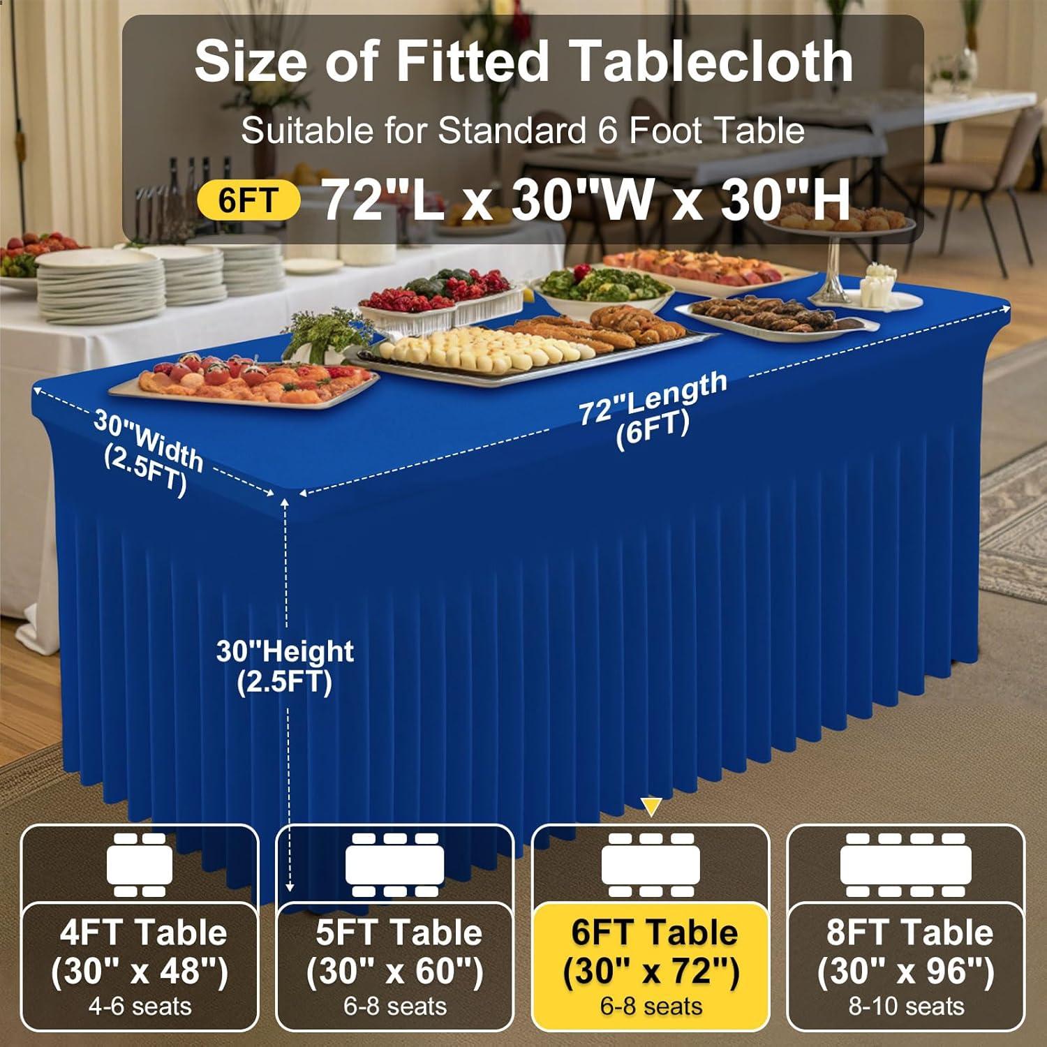[Measurement] Our banquet tablecloth dimensions for a 6-foot table are 72 inches in length, 30 inches in width, and 30 inches in height. Please measure your table to ensure you choose the appropriate size before making a purchase.