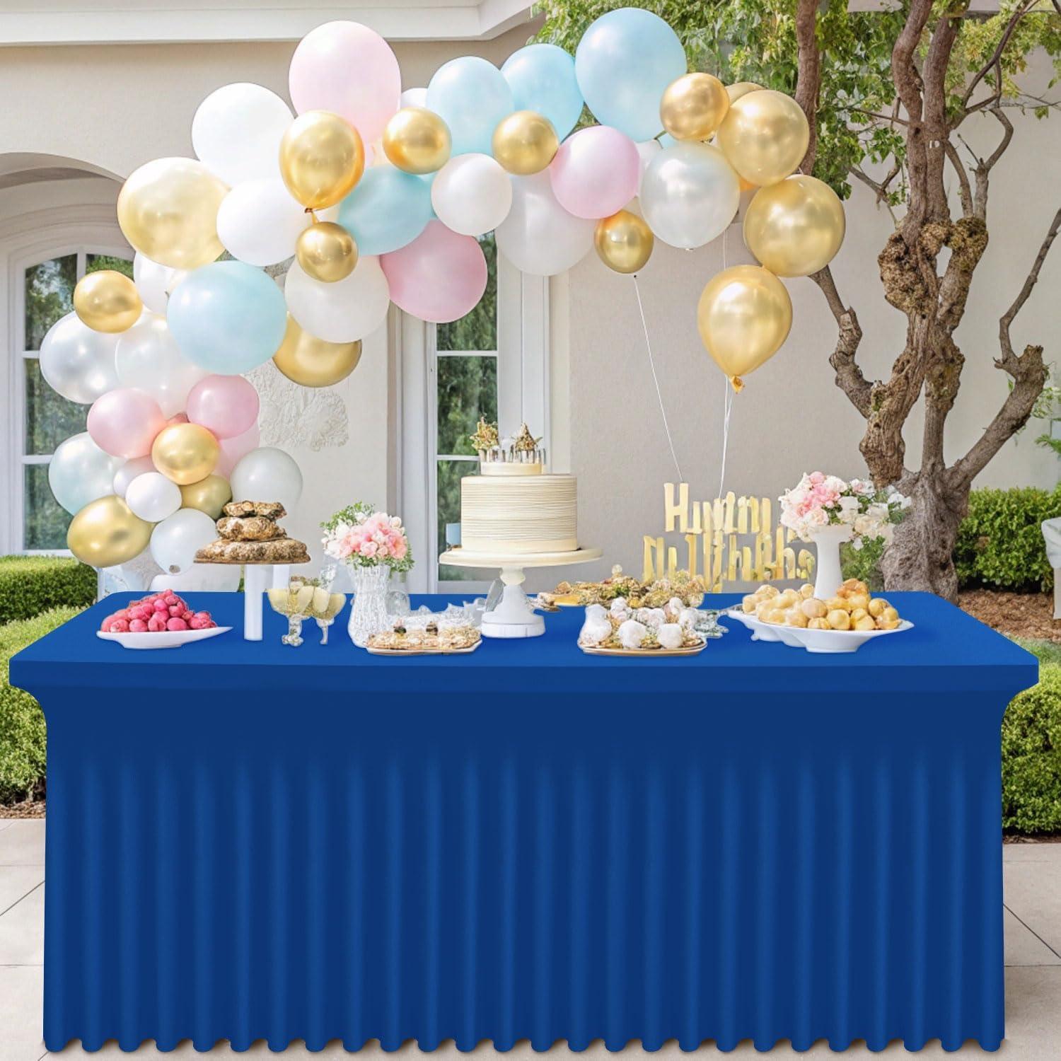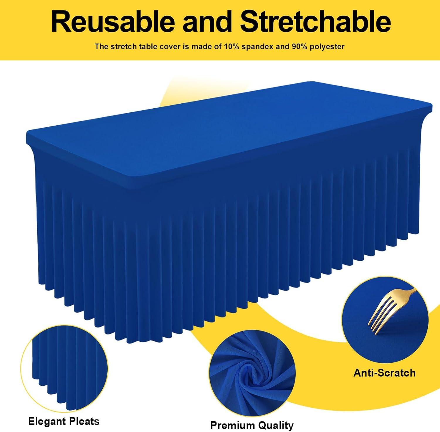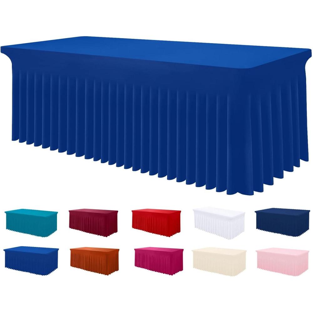 Smiry Spandex Tablecloth, Elastic Fitted Stretch Tablecloth for 6FT Rectangle Tables, Waterproof Washable Table Cover Skirt for Outdoor, Wedding, Banquet & Parties (White, 72Lx30Wx30H Inch)(Blue)
