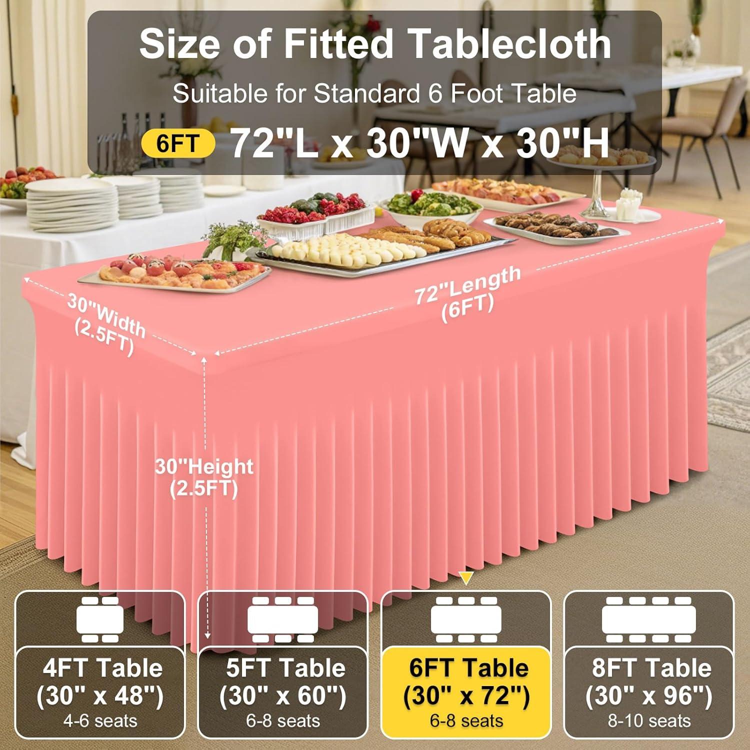 [Measurement] Our banquet tablecloth dimensions for a 6-foot table are 72 inches in length, 30 inches in width, and 30 inches in height. Please measure your table to ensure you choose the appropriate size before making a purchase.