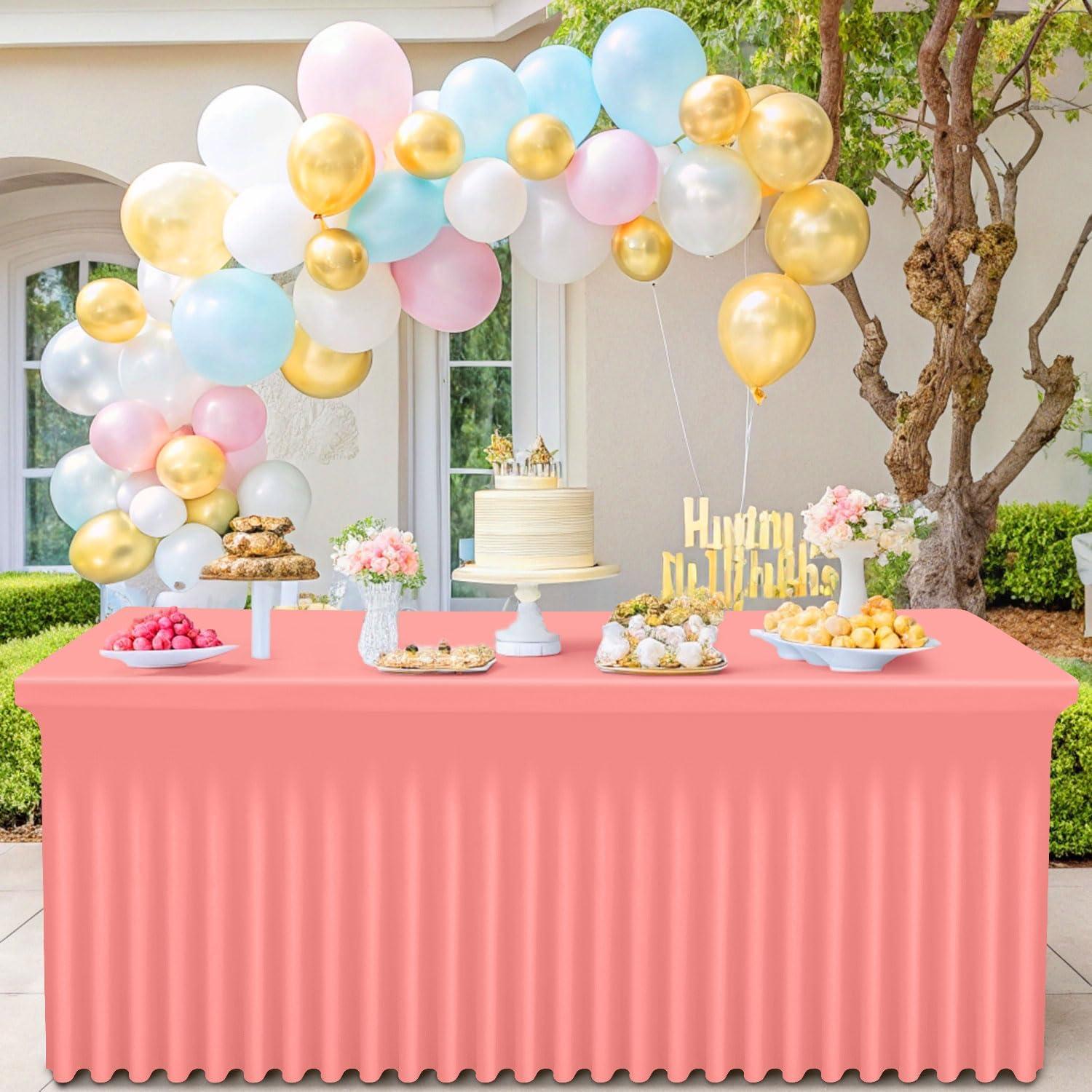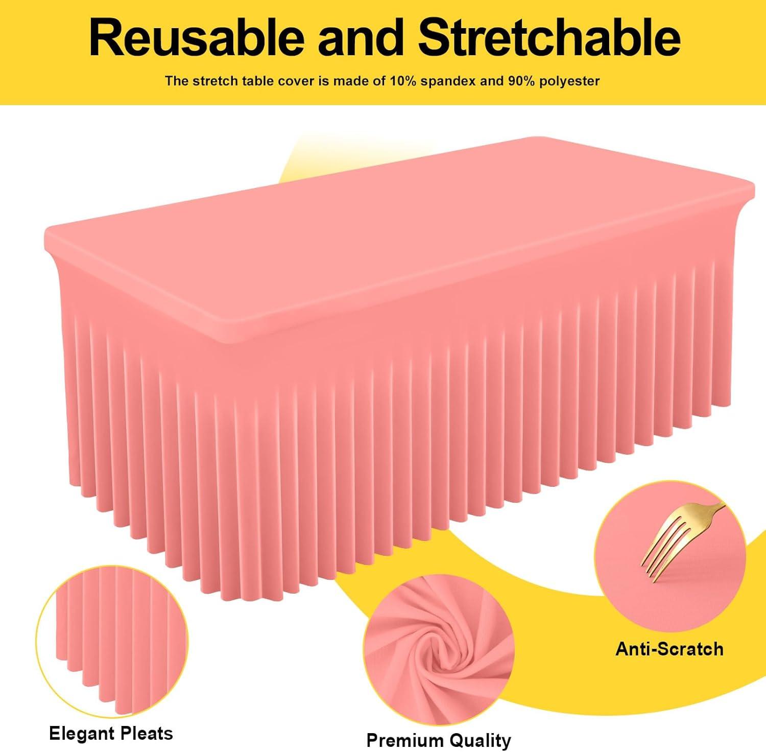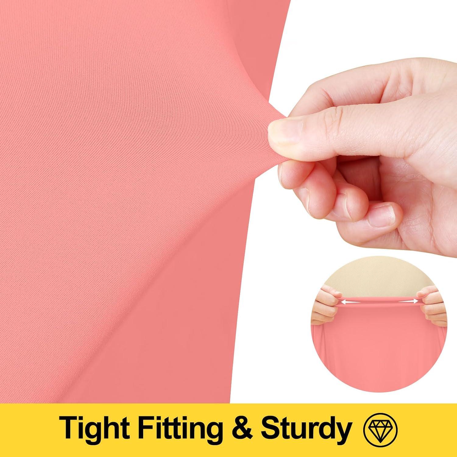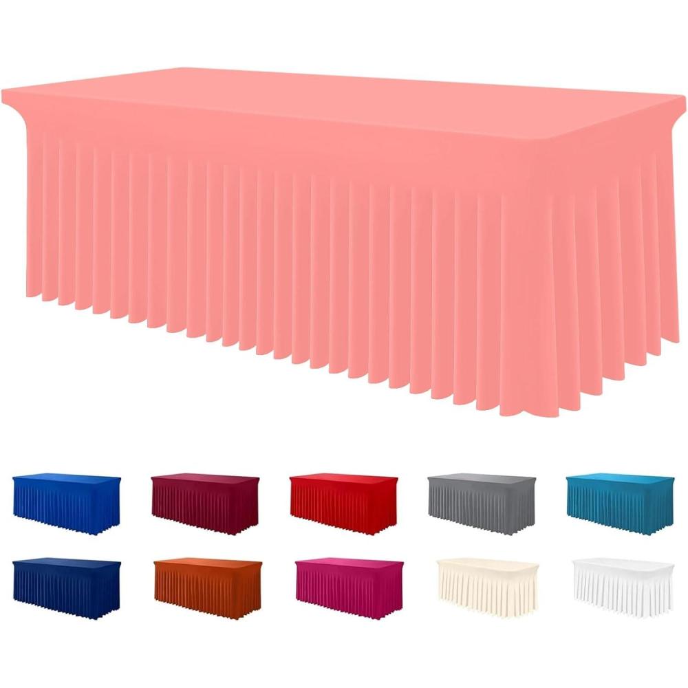 Smiry Spandex Tablecloth, Elastic Fitted Stretch Tablecloth for 6FT Rectangle Tables, Waterproof Washable Table Cover Skirt for Outdoor, Wedding, Banquet & Parties (White, 72Lx30Wx30H Inch)(Coral Red)
