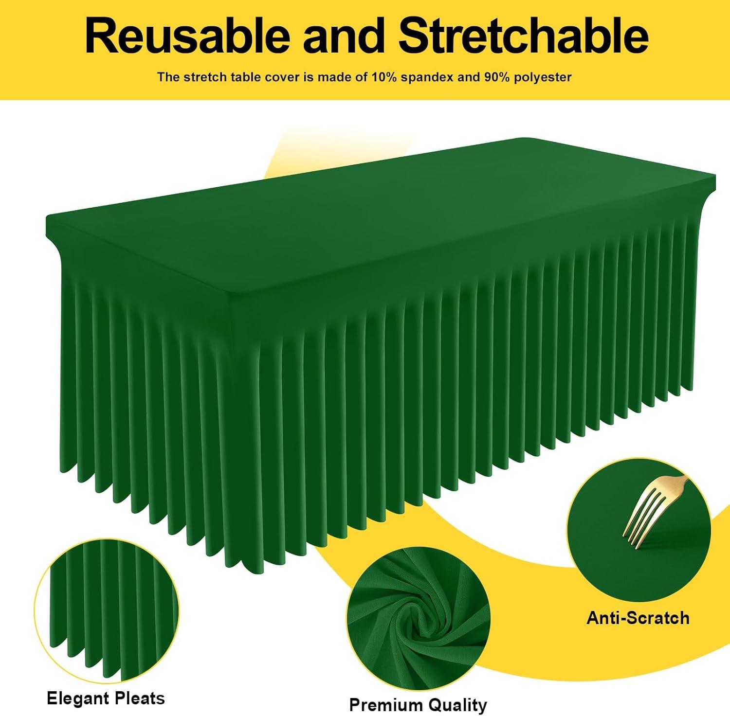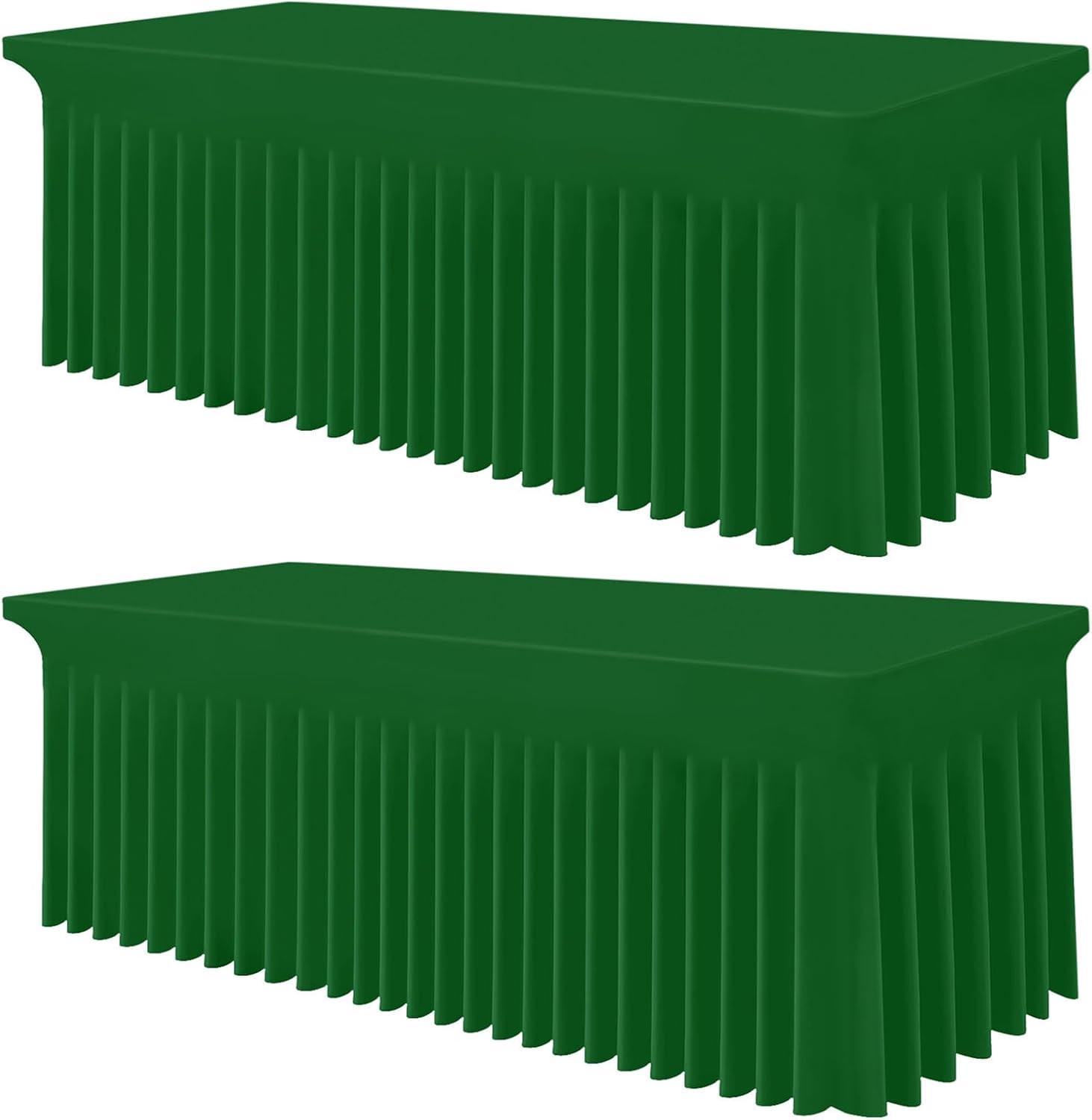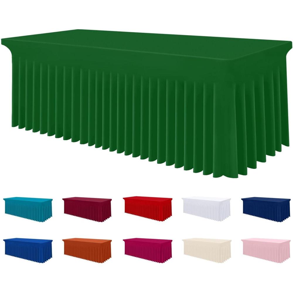 Smiry Spandex Tablecloth, Elastic Fitted Stretch Tablecloth for 6FT Rectangle Tables, Waterproof Washable Table Cover Skirt for Outdoor, Wedding, Banquet & Parties (White, 72Lx30Wx30H Inch)(Emerald Green)