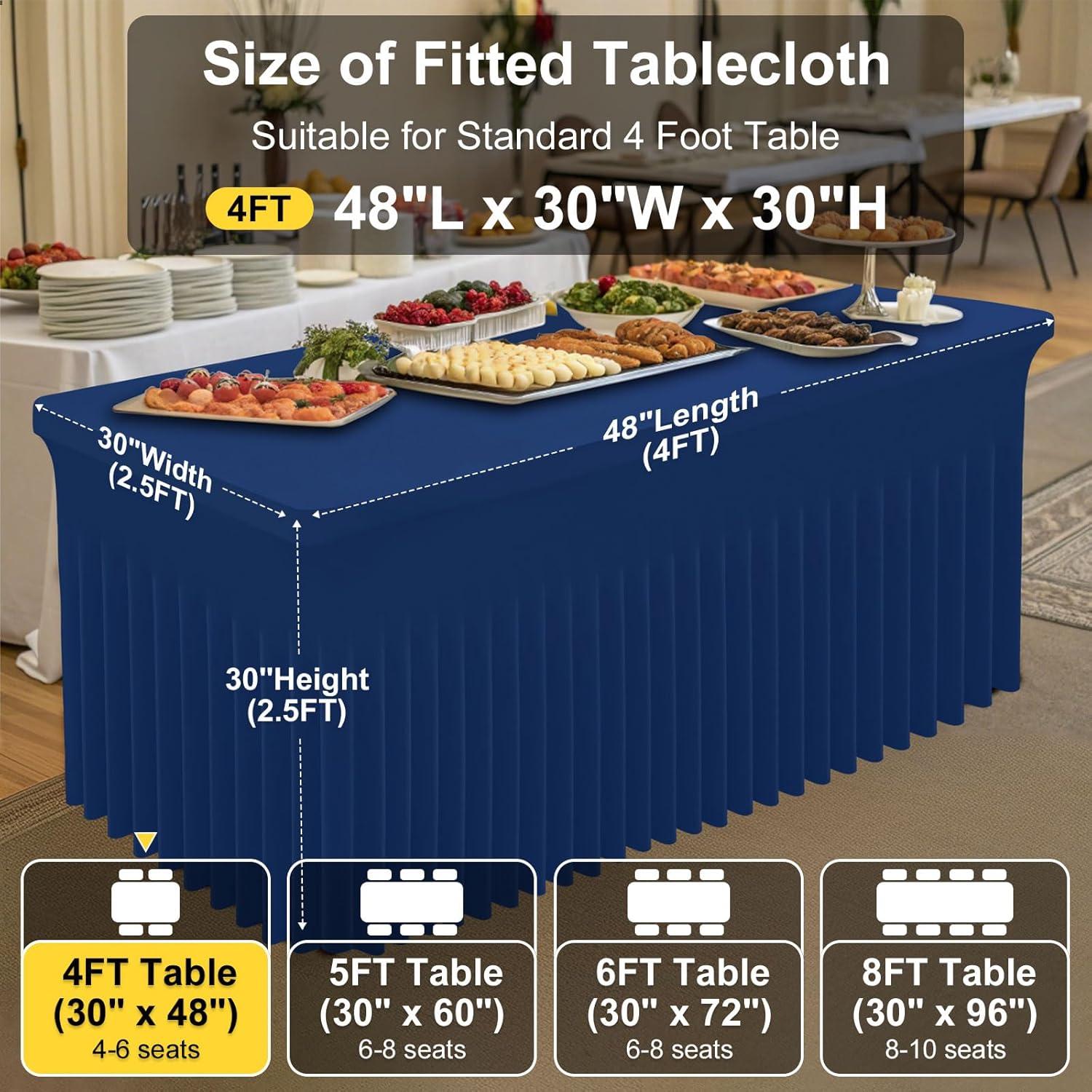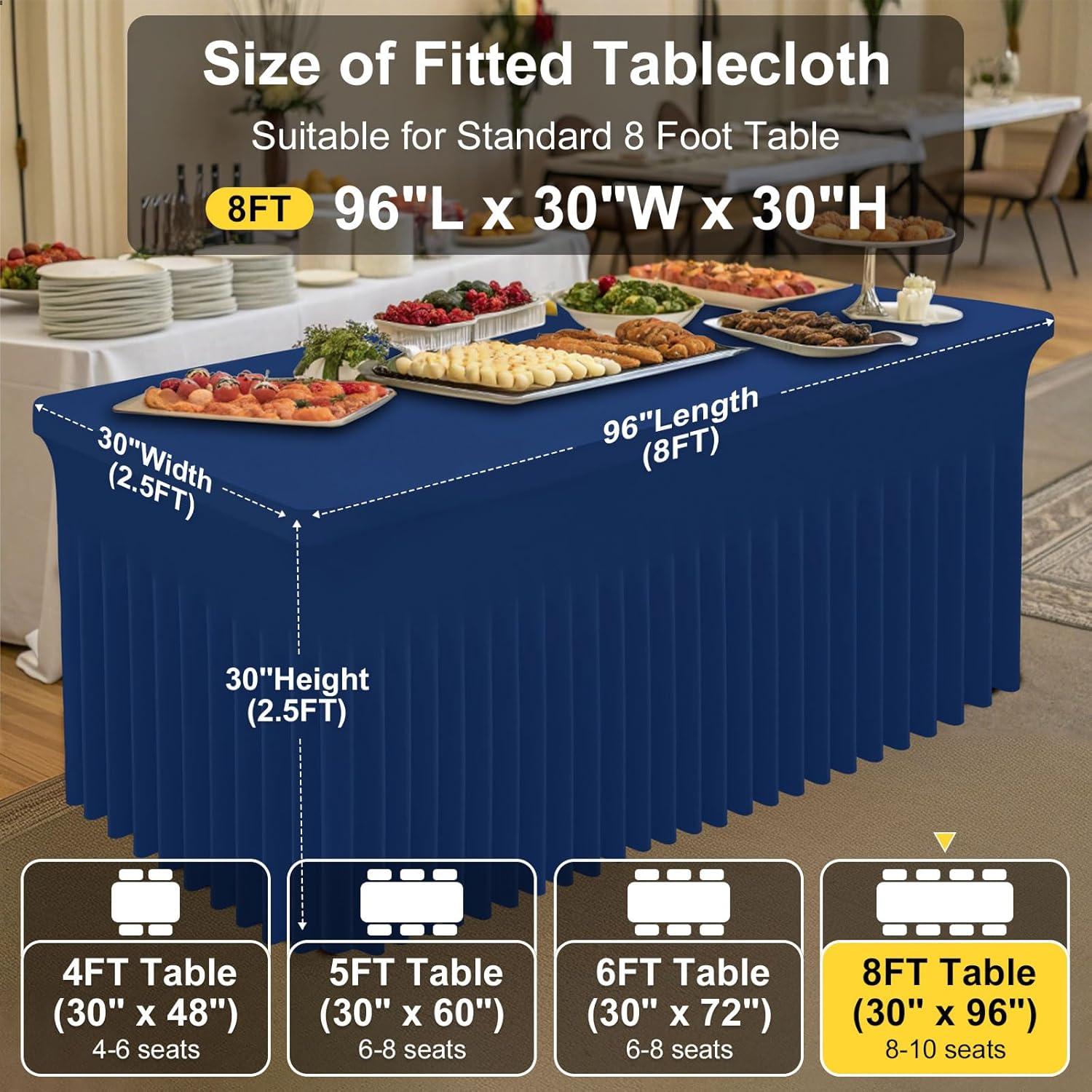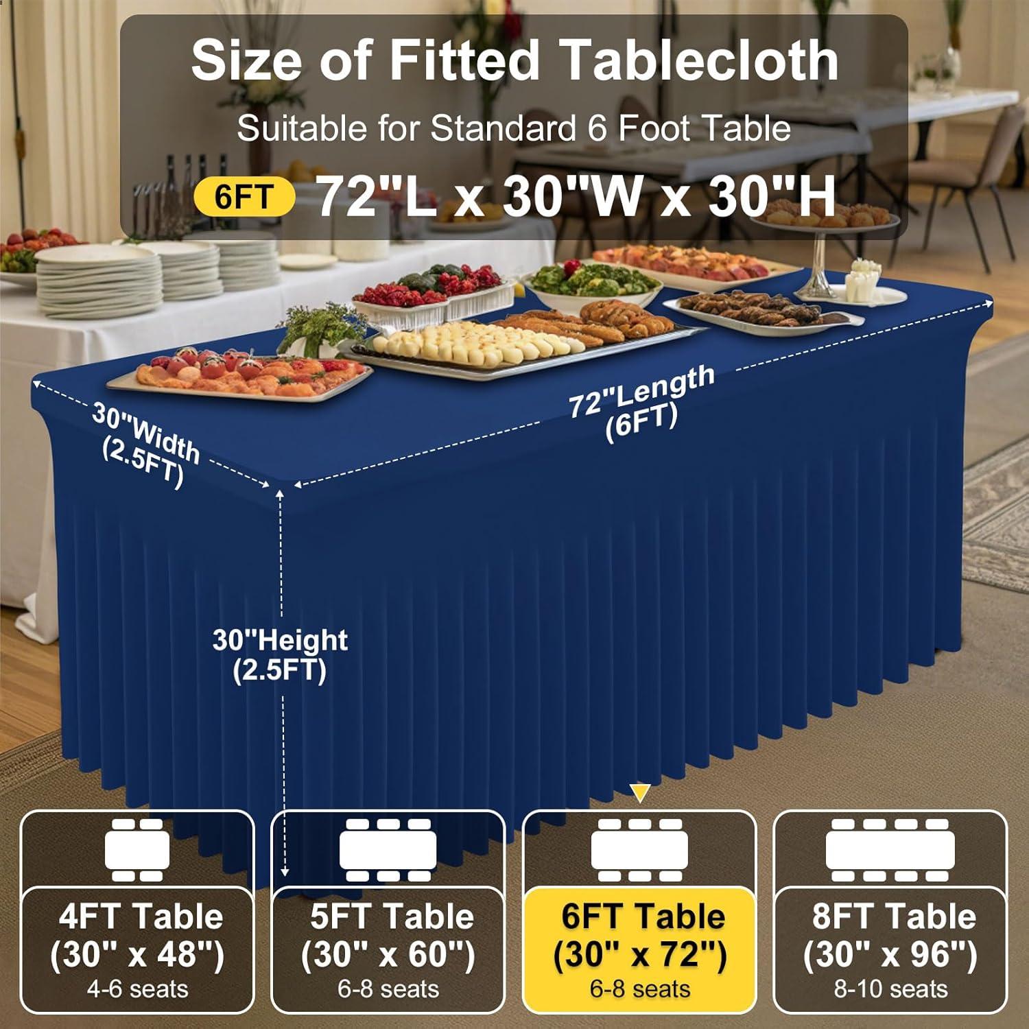 [Measurement] Our banquet tablecloth dimensions for a 6-foot table are 72 inches in length, 30 inches in width, and 30 inches in height. Please measure your table to ensure you choose the appropriate size before making a purchase.