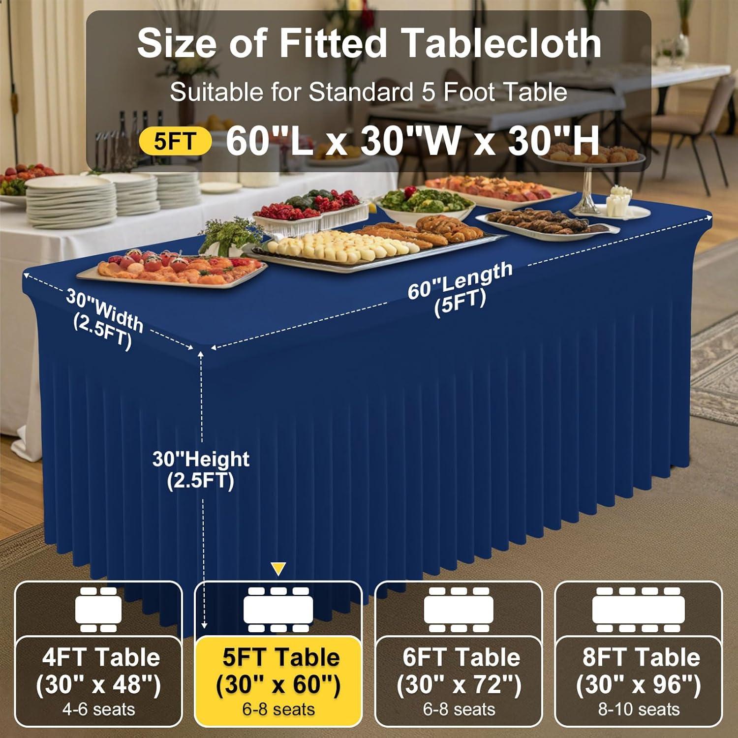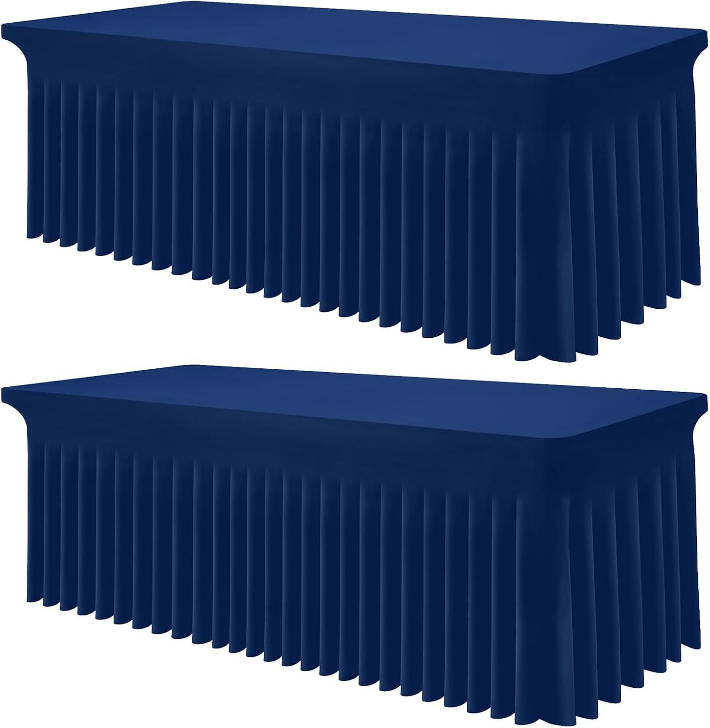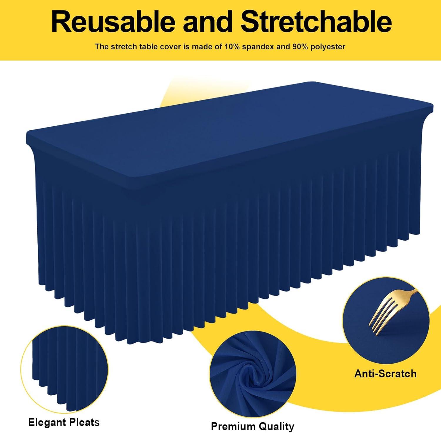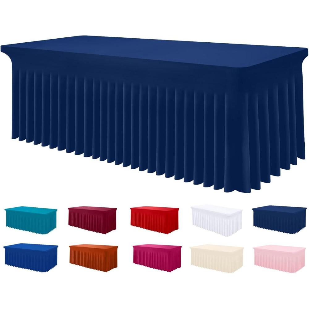 Smiry Spandex Tablecloth, Elastic Fitted Stretch Tablecloth for 6FT Rectangle Tables, Waterproof Washable Table Cover Skirt for Outdoor, Wedding, Banquet & Parties (White, 72Lx30Wx30H Inch)(Navy)