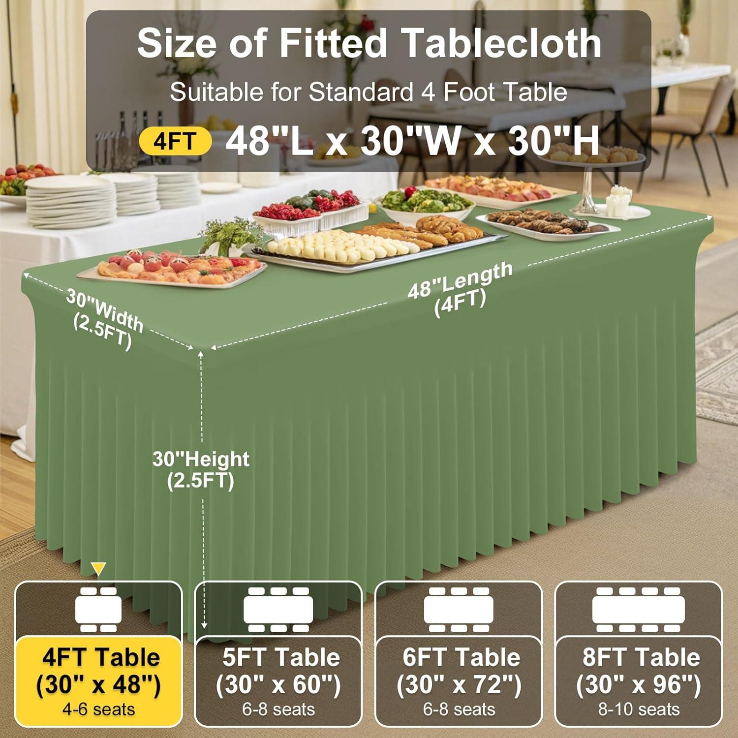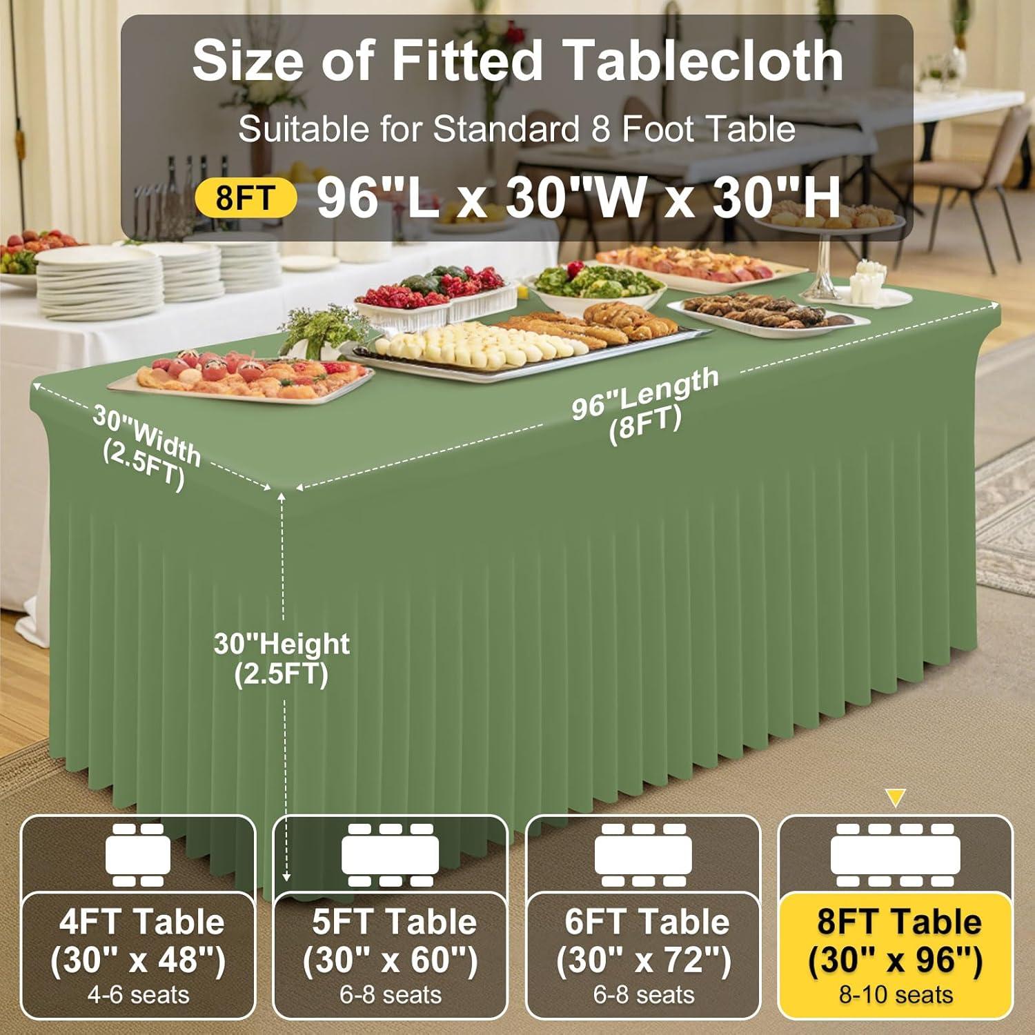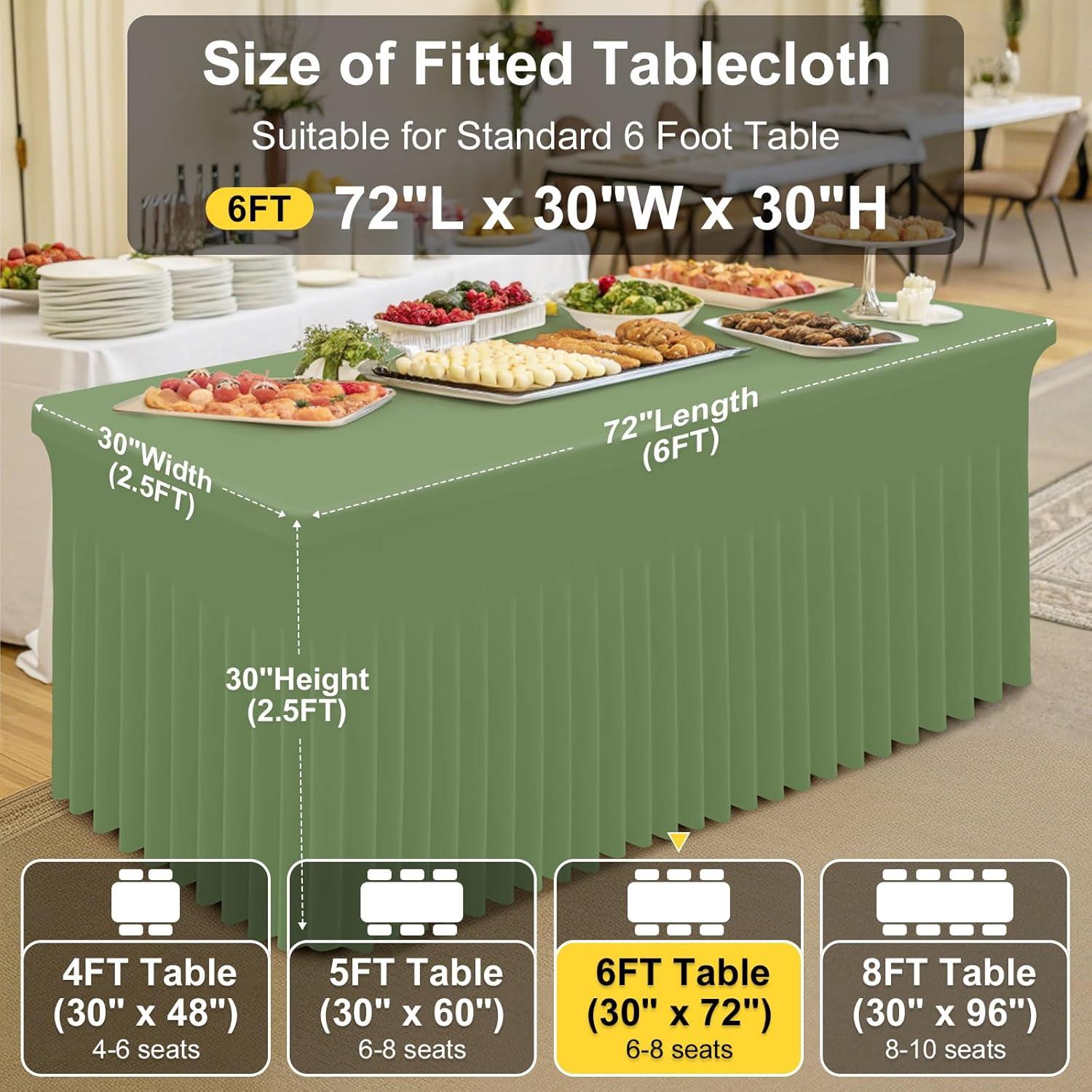 [Measurement] Our banquet tablecloth dimensions for a 6-foot table are 72 inches in length, 30 inches in width, and 30 inches in height. Please measure your table to ensure you choose the appropriate size before making a purchase.
