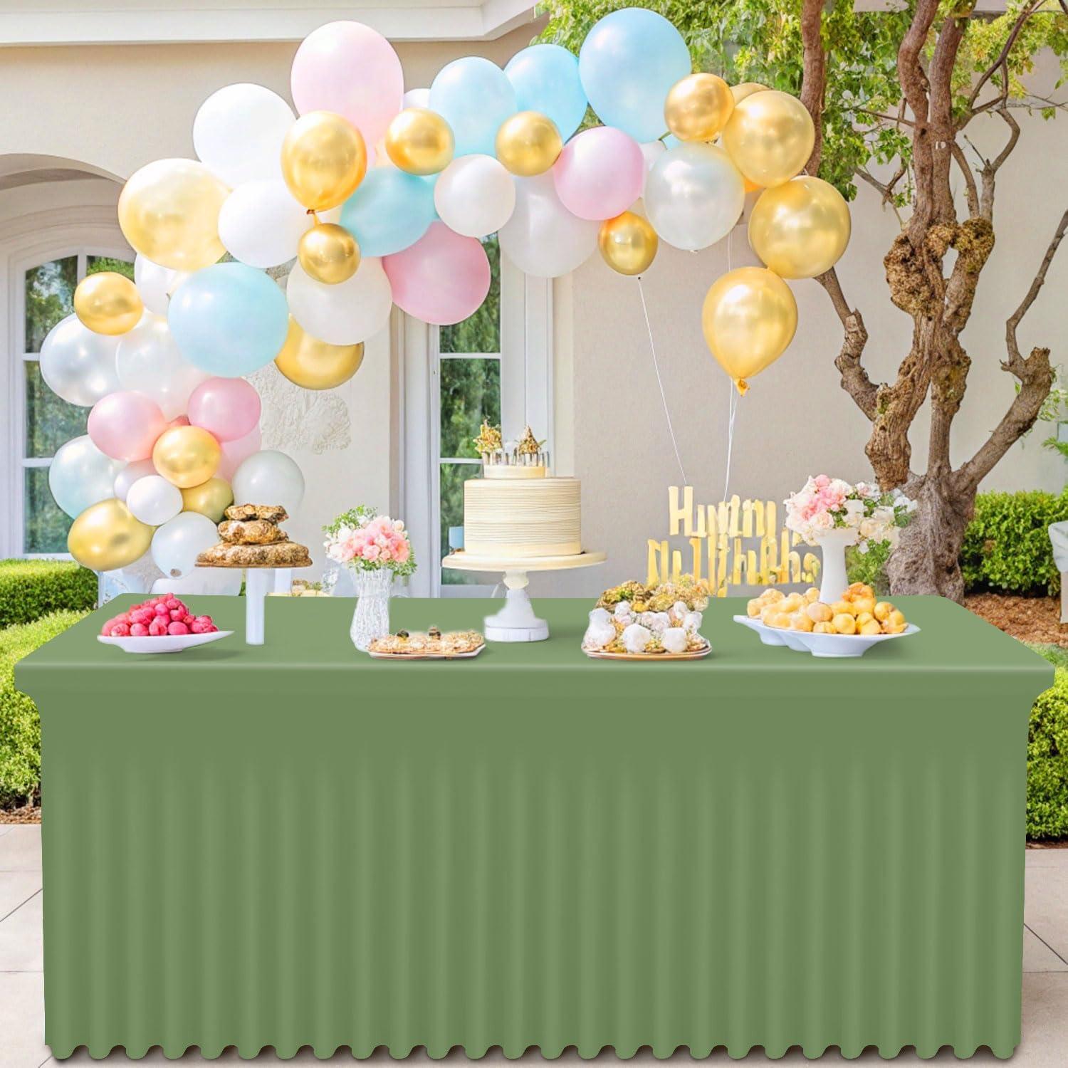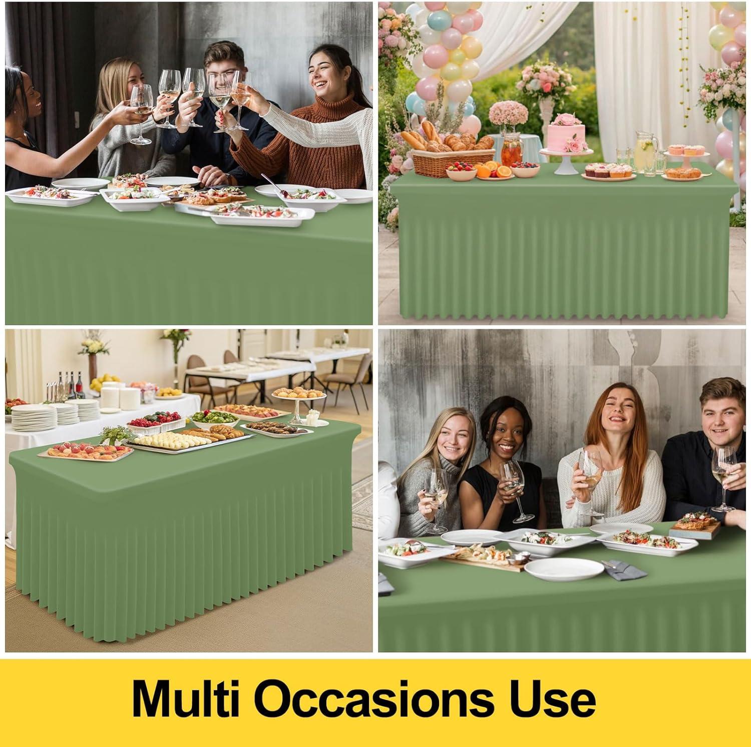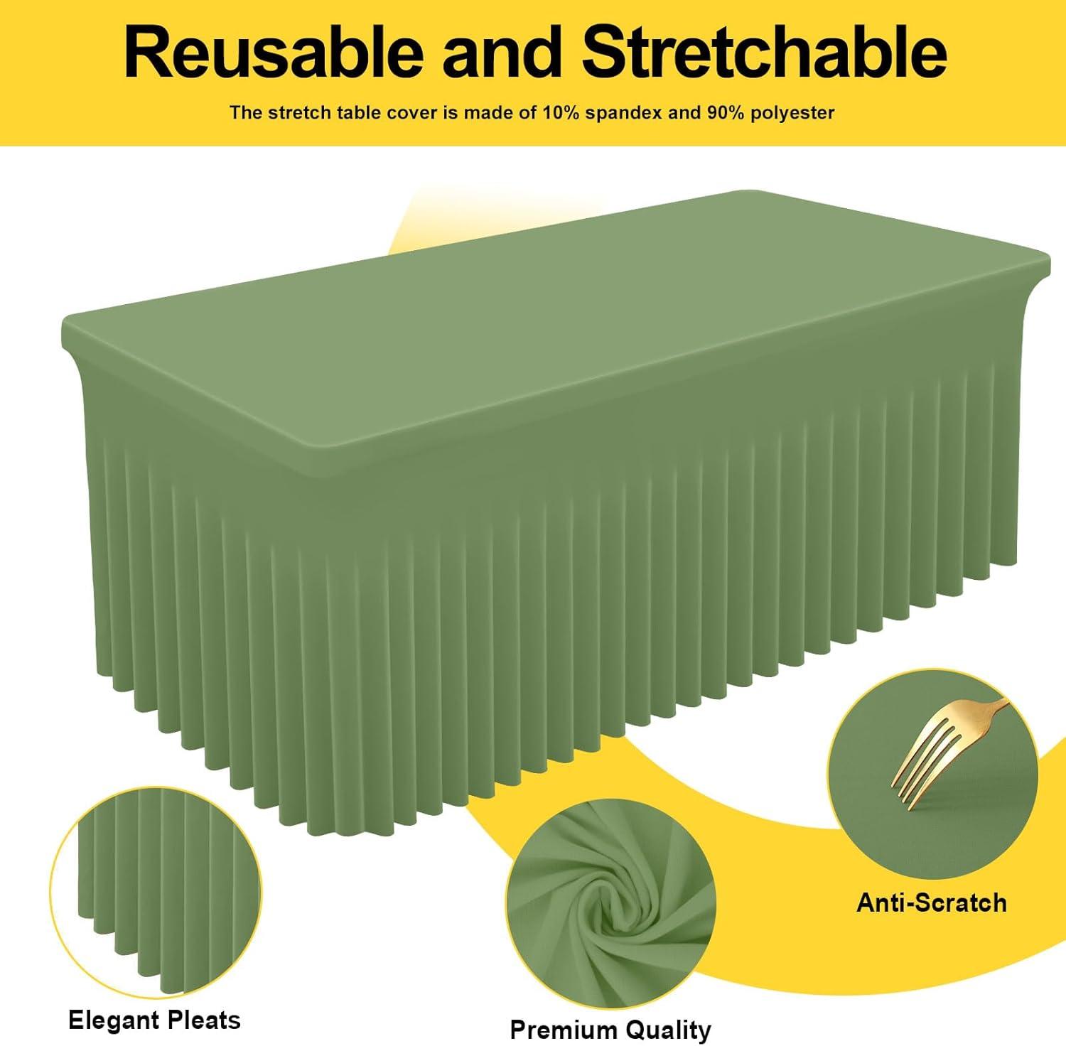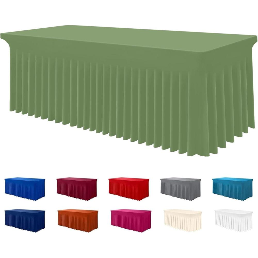 imageSmiry Spandex Tablecloth Elastic Fitted Stretch Tablecloth for 6FT Rectangle Tables Waterproof Washable Table Cover Skirt for Outdoor Wedding Banquet ampamp Parties White 72Lx30Wx30H InchSage Green