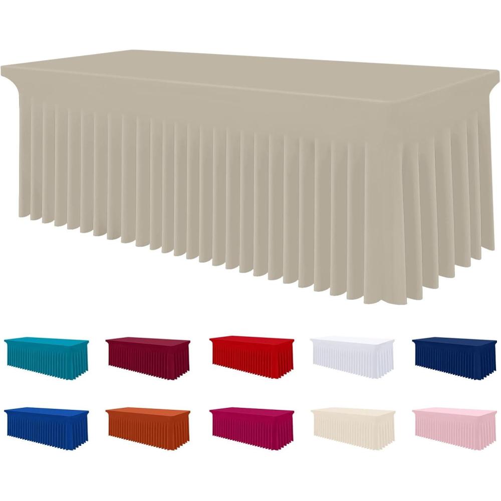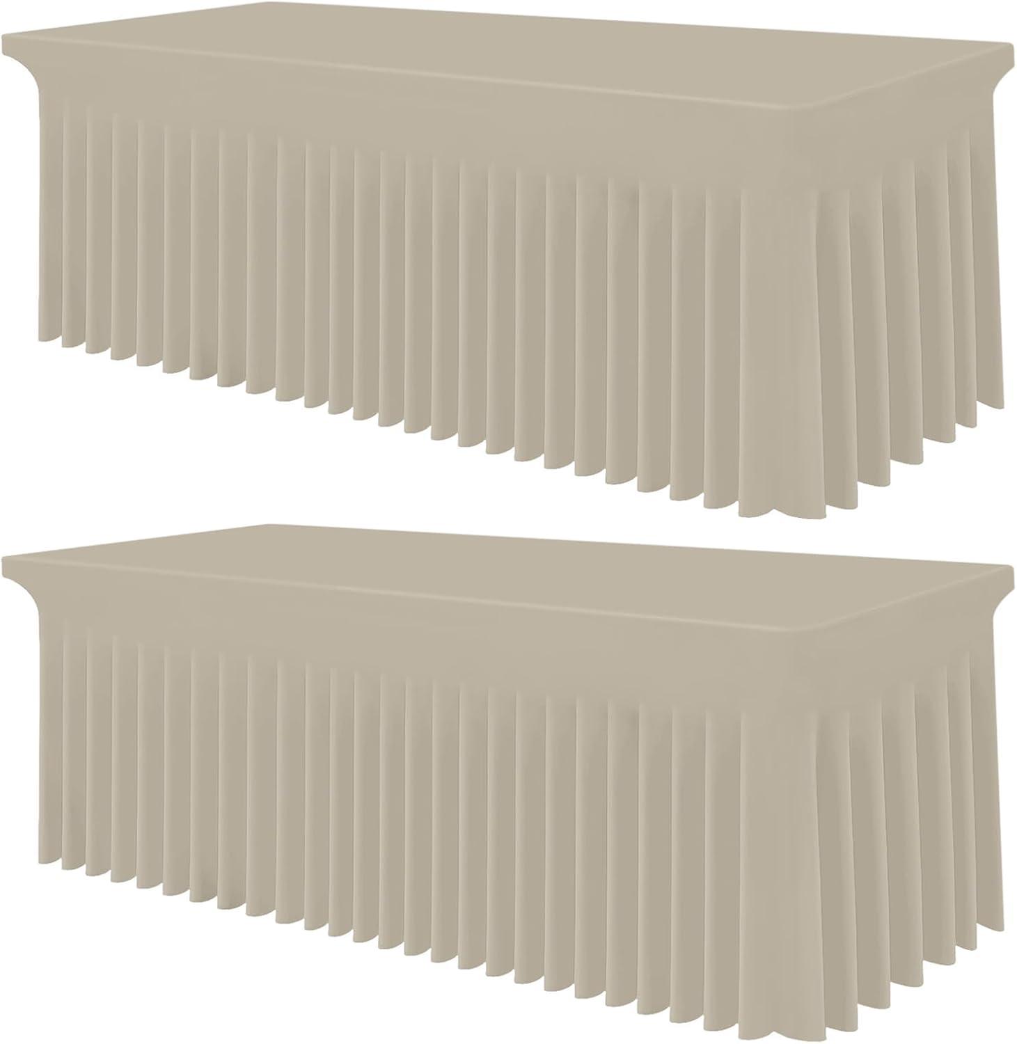 Smiry Spandex Tablecloth, Elastic Fitted Stretch Tablecloth for 6FT Rectangle Tables, Waterproof Washable Table Cover Skirt for Outdoor, Wedding, Banquet & Parties (White, 72Lx30Wx30H Inch)(Taupe)