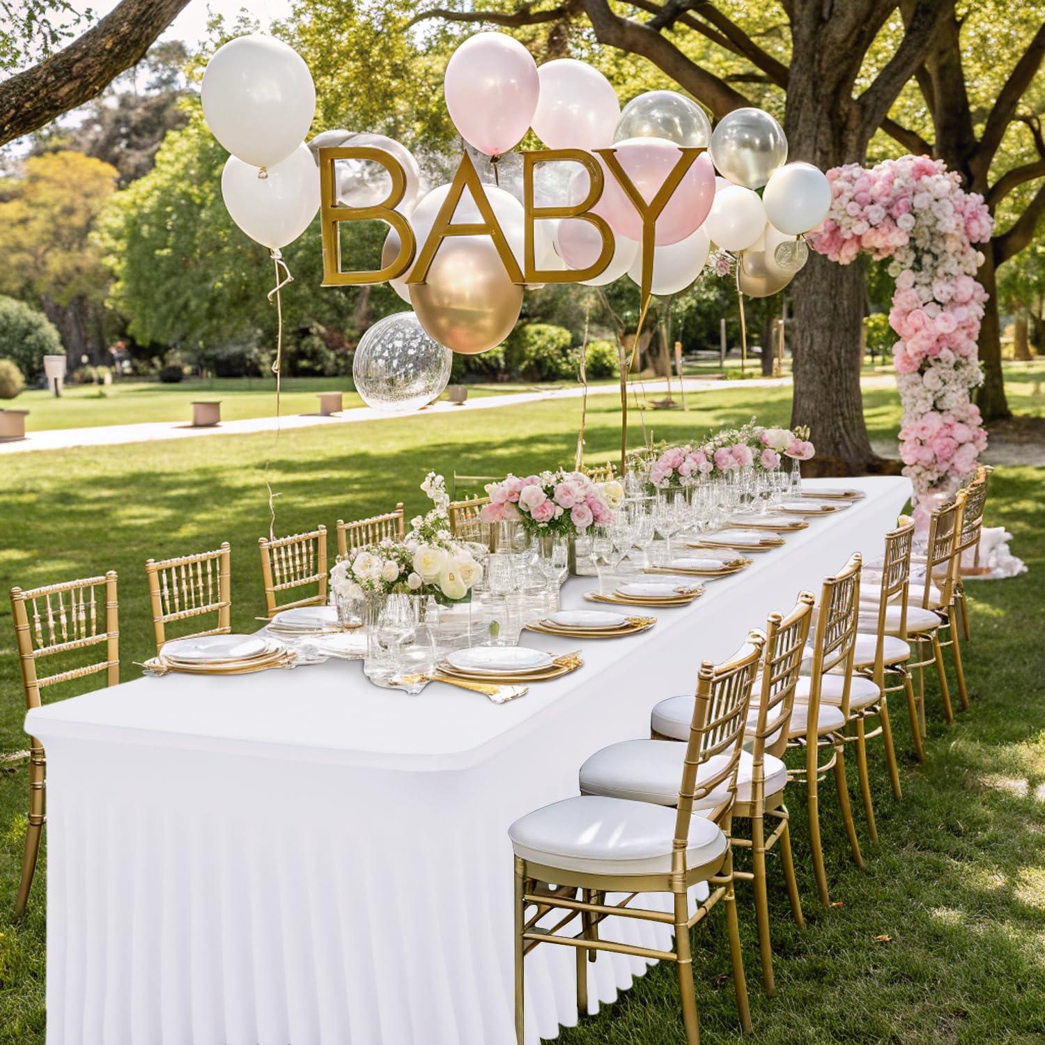 [One-Piece Design] Our One-Piece tablecloth seamlessly combines the table cover and table skirt into one elegant piece. The sophisticated ruffled design creates a stylish and graceful appearance, while the floor-length skirt effortlessly conceals clutter, ensuring a neat, professional, and polished setup for any occasion.