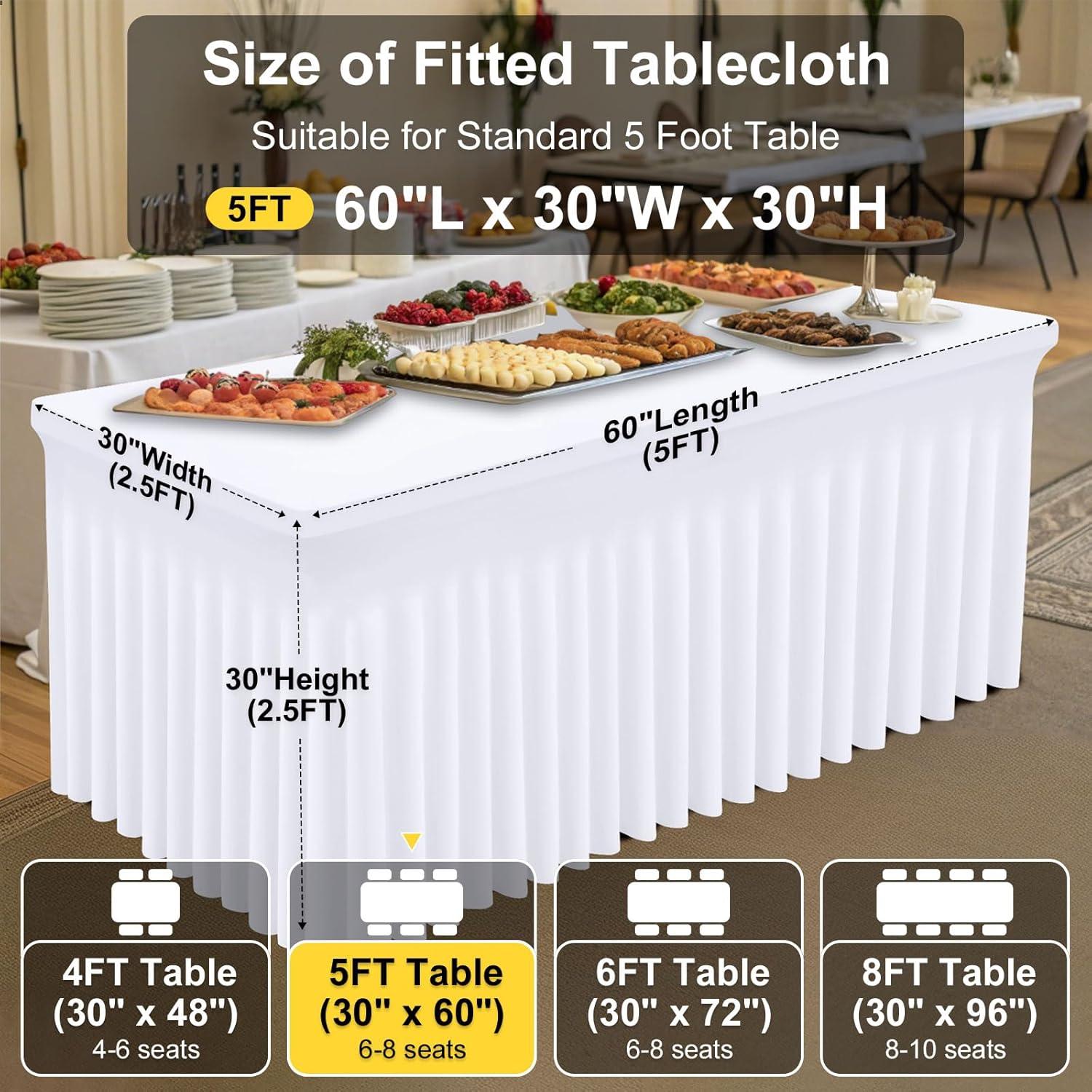 [Measurement] Our banquet tablecloth dimensions for a 6-foot table are 72 inches in length, 30 inches in width, and 30 inches in height. Please measure your table to ensure you choose the appropriate size before making a purchase.