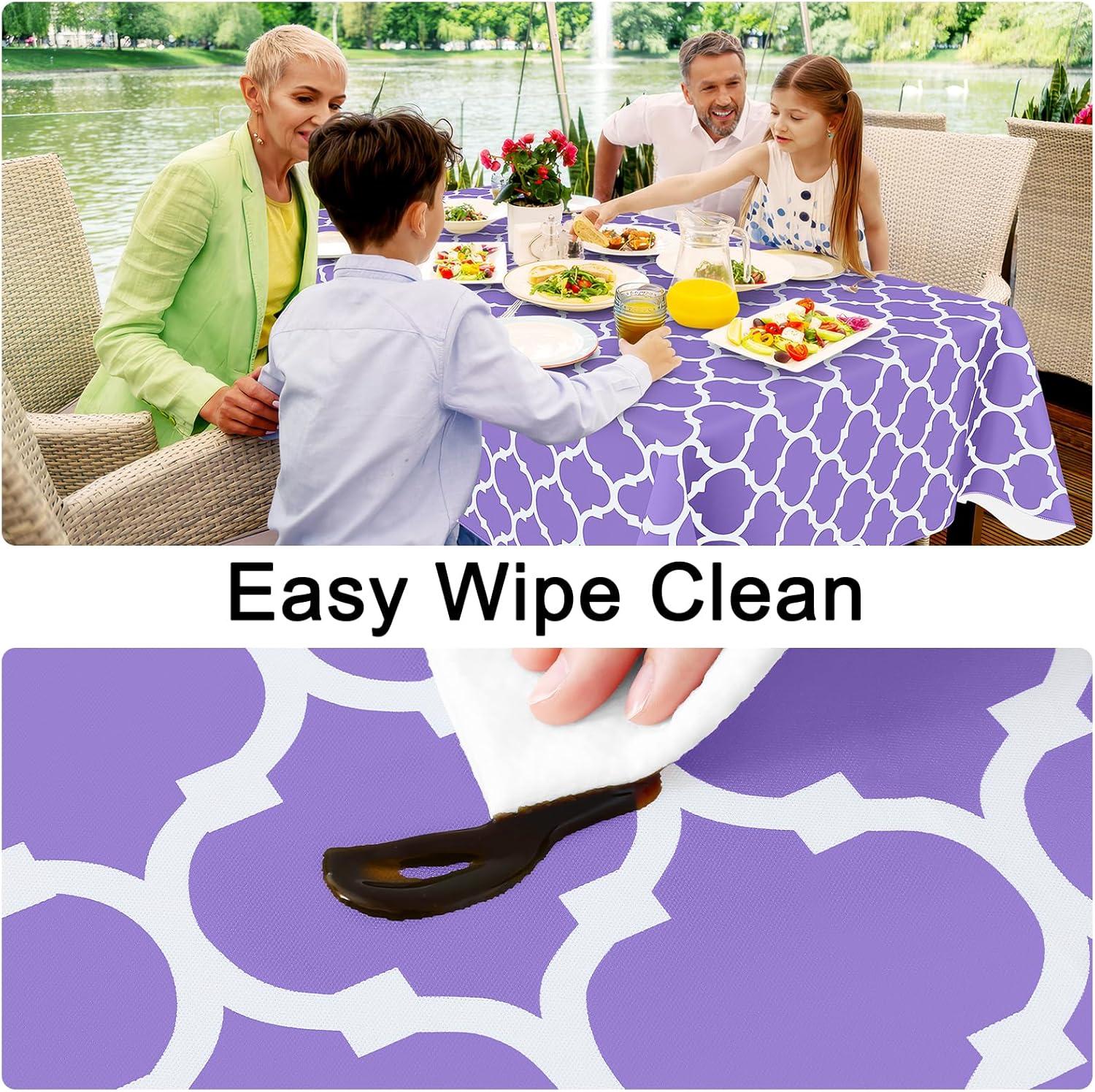 [Waterproof and Wipe Clean] The waterproof vinyl surfaces insulate our table cloths from water, milk, oil and other stains. Just rub with a damp cloth or sponge to remove the stain and look fresh.