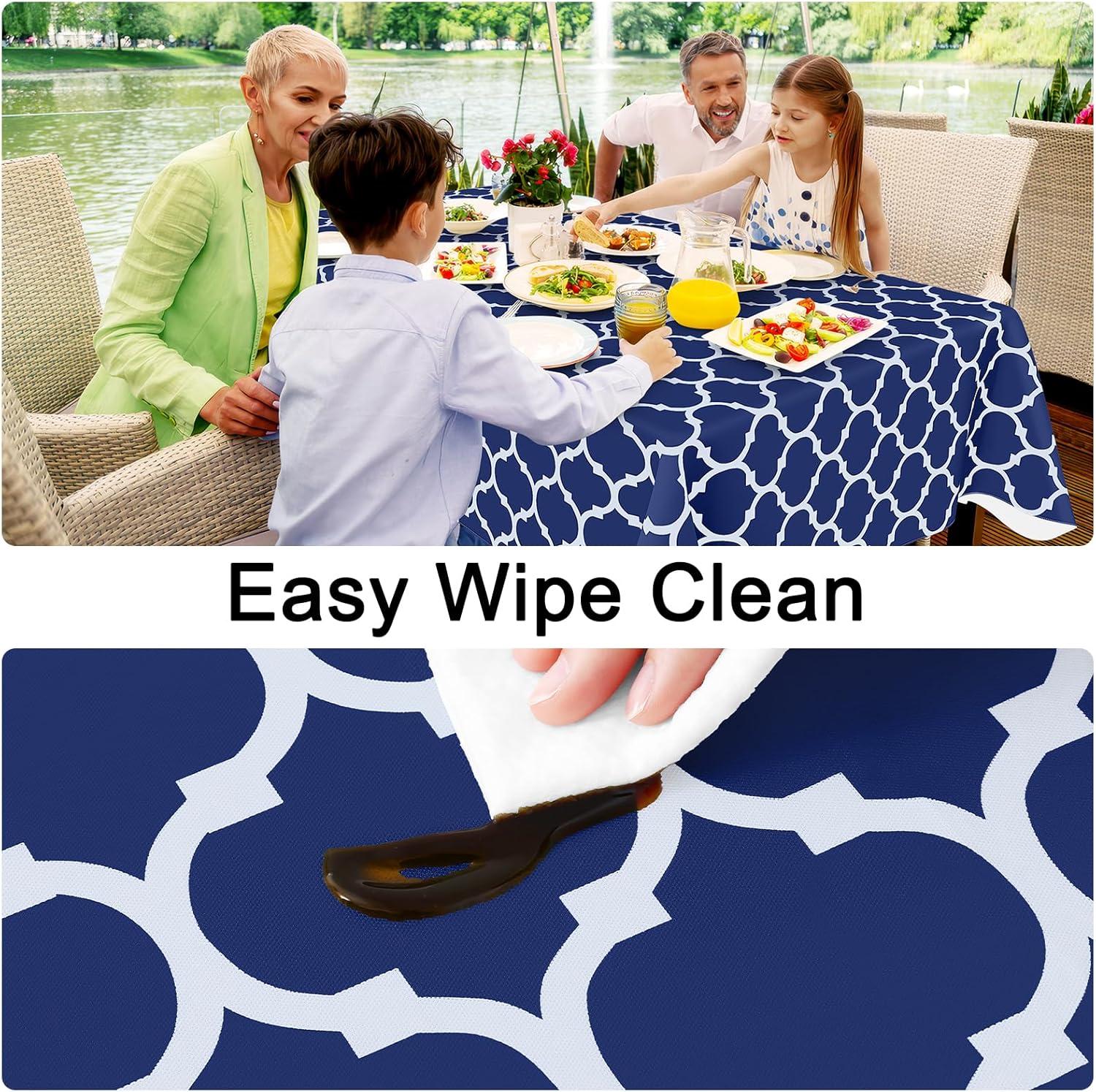 [Waterproof and Wipe Clean] The waterproof vinyl surfaces insulate our table cloths from water, milk, oil and other stains. Just rub with a damp cloth or sponge to remove the stain and look fresh.