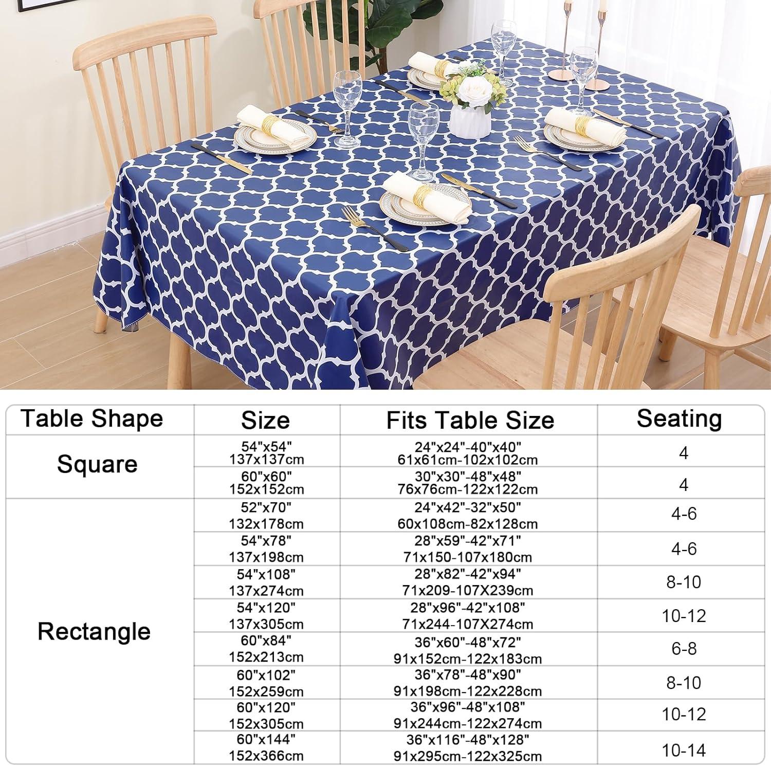 [Know Your Table Sizes] Smiry square tablecloth measures 54 by 54 inches and fits square tables measuring 24 x 24 inches to 40 x 40 inches, seating up to 4 adults. To purchase a more appropriate table cover, take a few seconds to measure your table before purchasing.