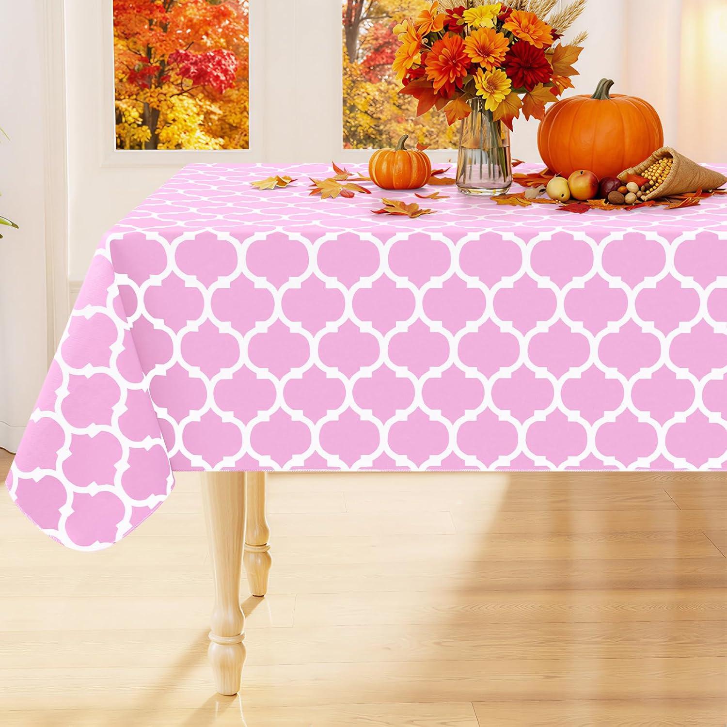 Smiry Square Table Cloth, Waterproof Vinyl Tablecloths with Flannel Backing for Square Tables, Wipeable Spillproof Plastic Tablecloth for Dining, Camping, Indoor and Outdoor (54″ x 54″, Black)(Pink)