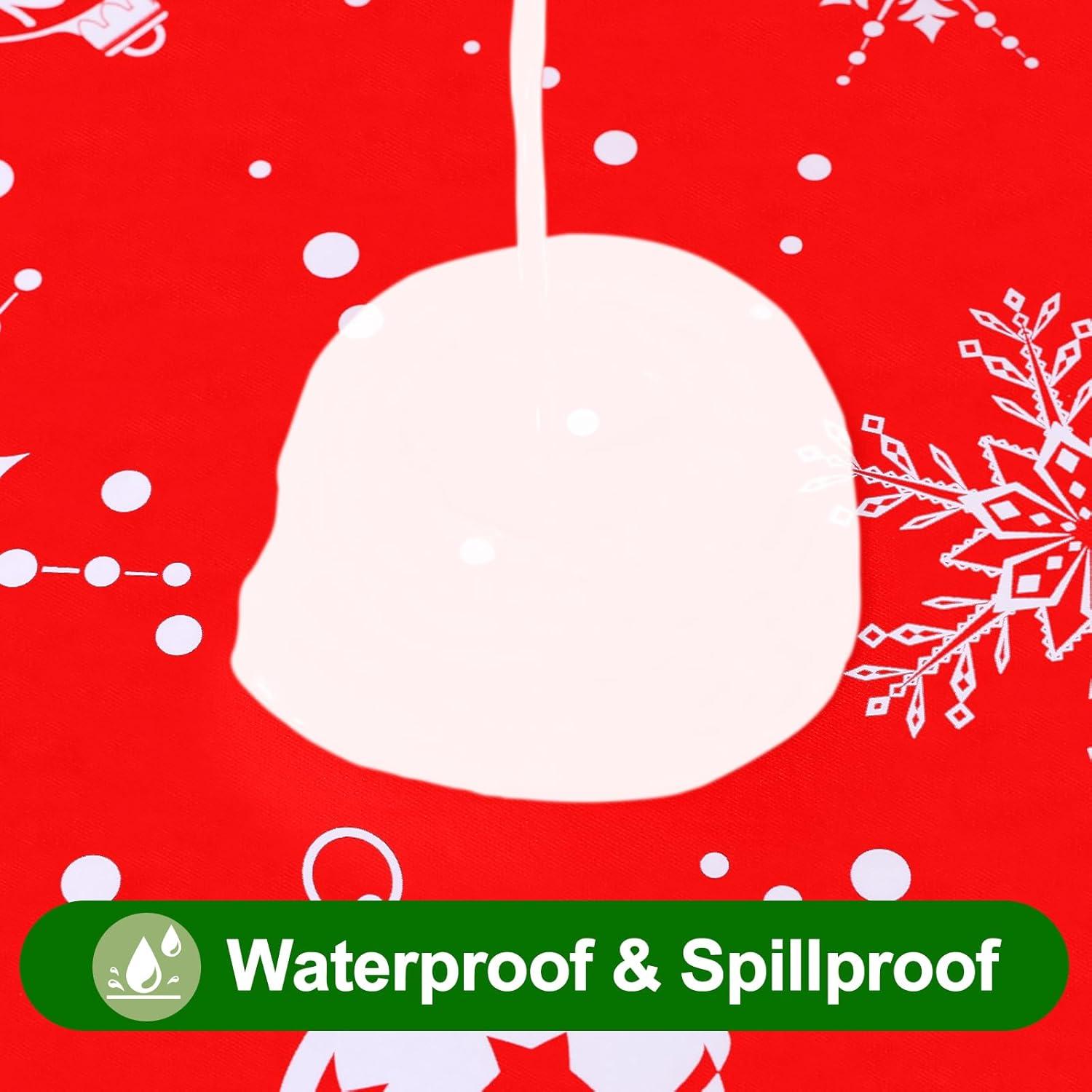 [Waterproof and Wipe Clean] The waterproof vinyl surfaces insulate our table cloths from water, milk, oil and other stains. Just rub with a damp cloth or sponge to remove the stain and look fresh.